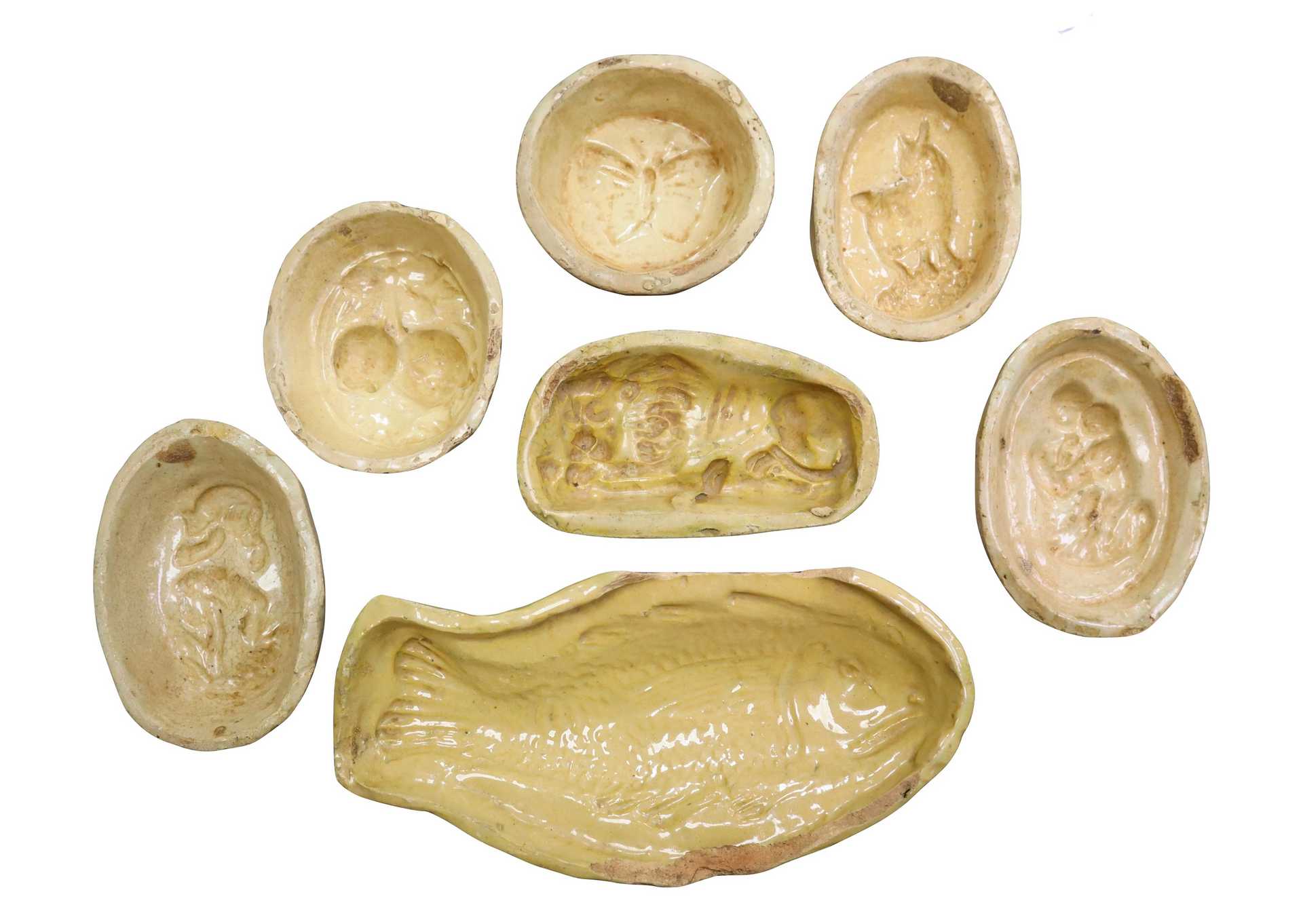 Gruppo di 7 formelle per mostarda Formella stampo pesce : 29 x 10 cm. Altre formelle cm 17 x 7, 14