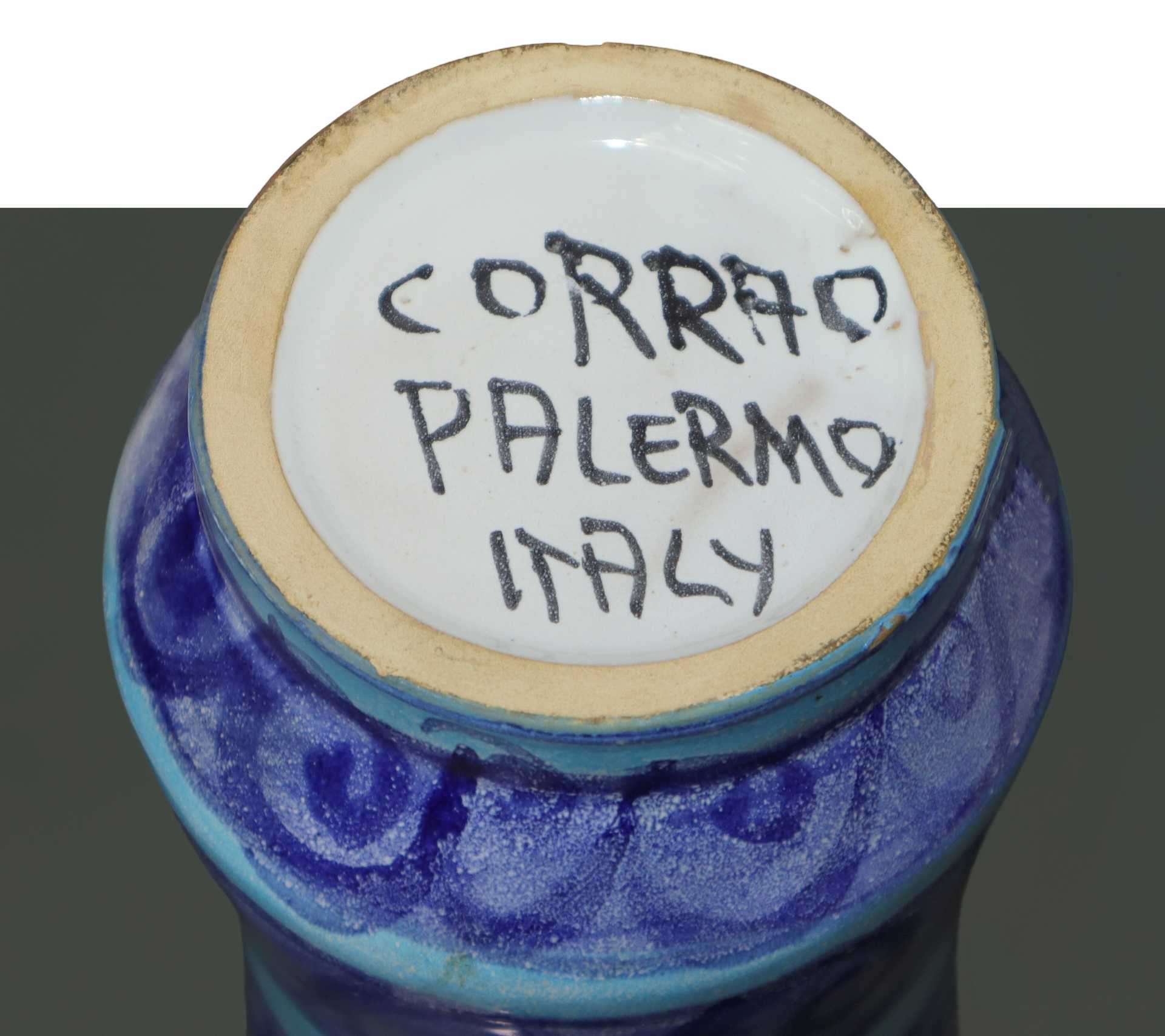 Albarello in maiolica, Palermo, 70s Firmato alla base Corrao Firmato alla base Corrao
