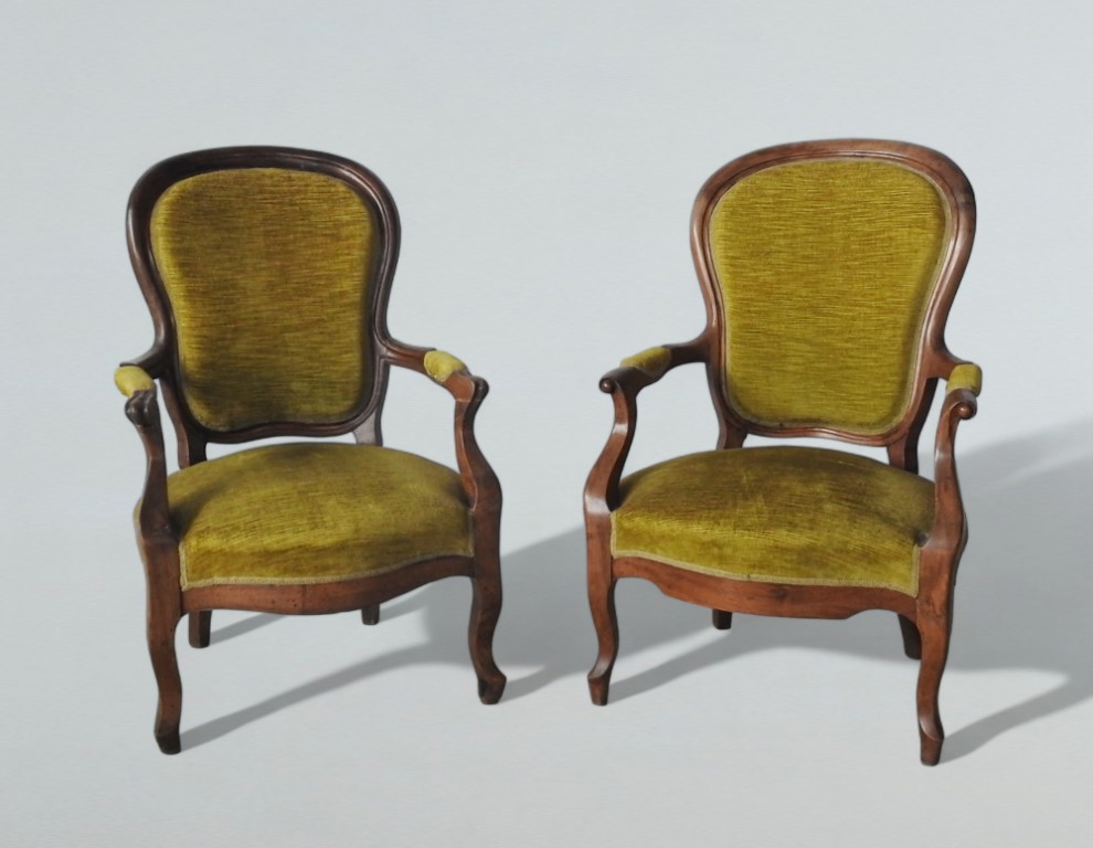 Coppia di poltrone Luigi Filippo in noce intagliato
