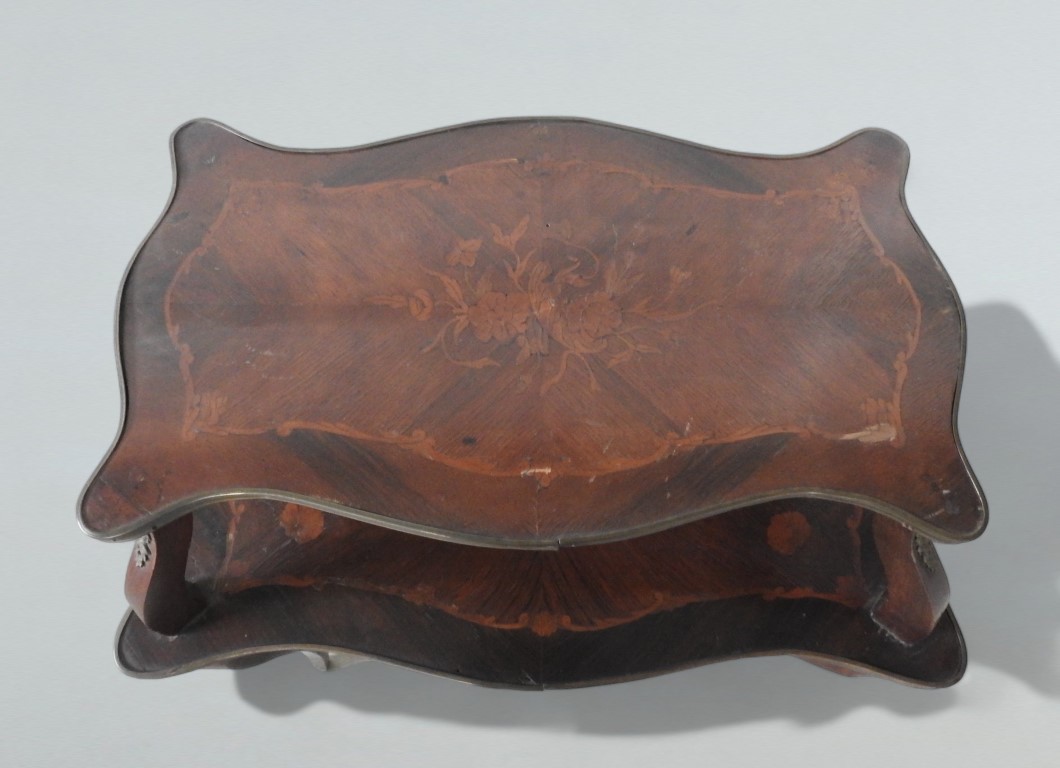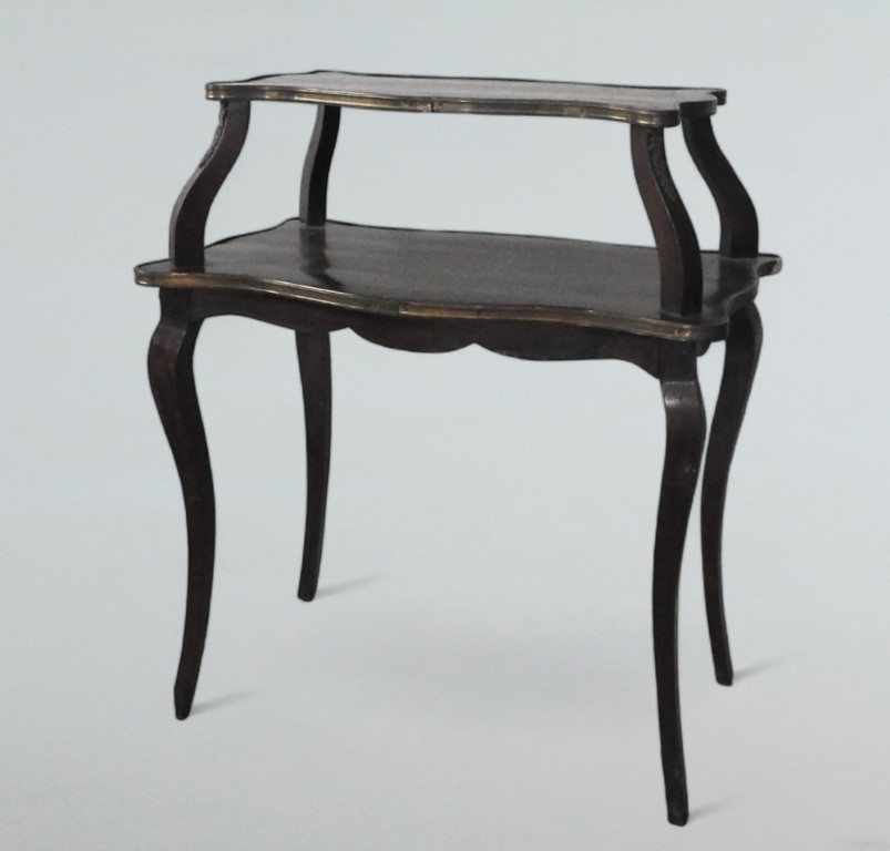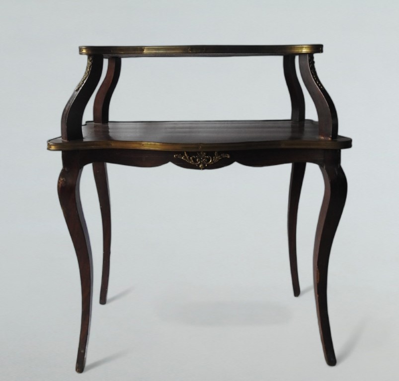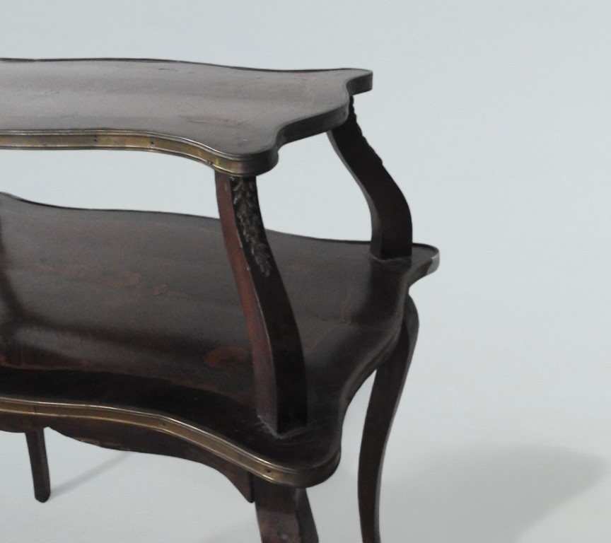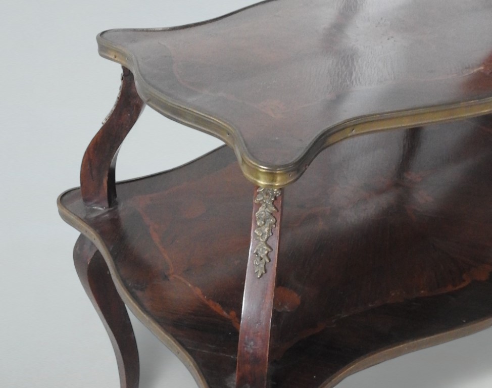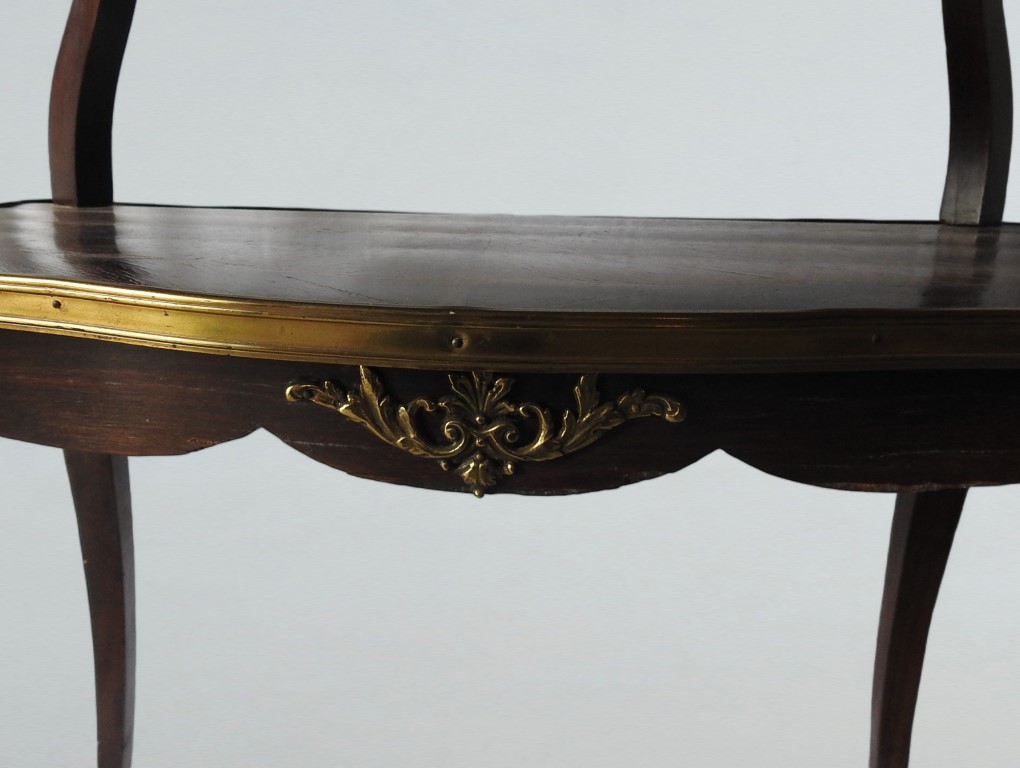 Tavolino a doppio piano in bois de rose con rapporti in bronzo