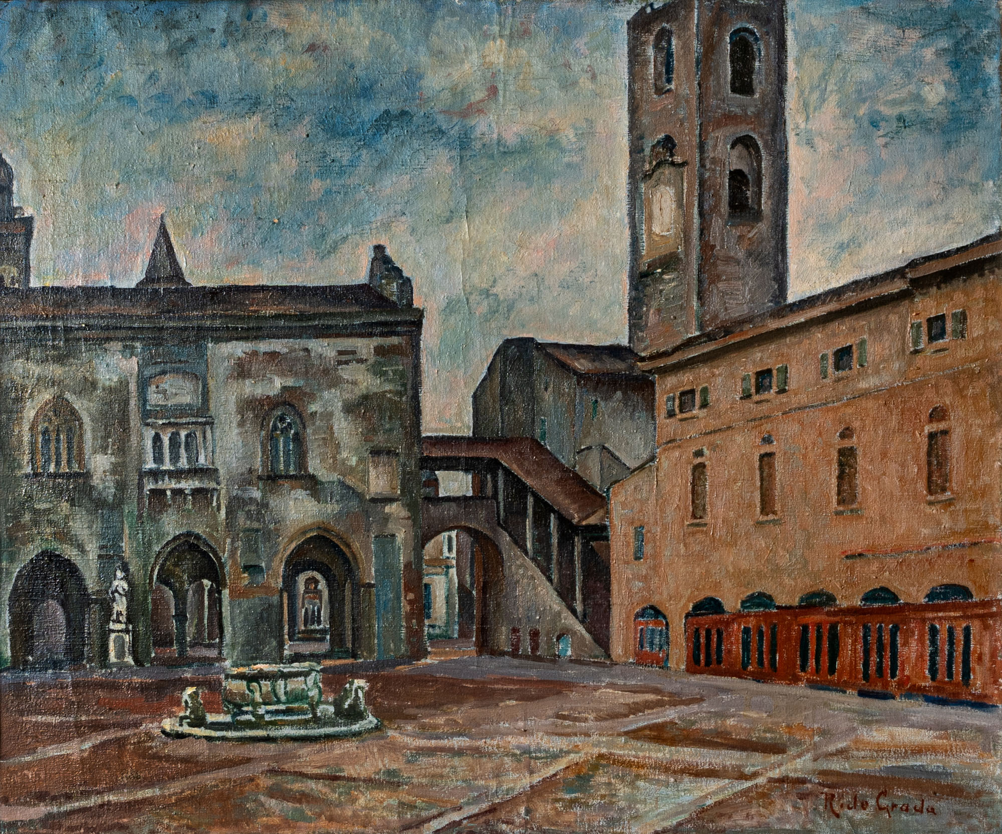 DE GRADA RAFFAELE(1885 - 1957)Piazza vecchia - Bergamo1939 circaOlio su tela75 x 90 cmFirmato in basso a destraTitolo su etichetta al retroPROVENIENZA:Collezione privata, LeccoESPOSIZIONI:1939, Concorso per l'Interpretazione Artistica di Bergamo Antica, Palazzo della Regione, Bergamo (etichetta al retro)