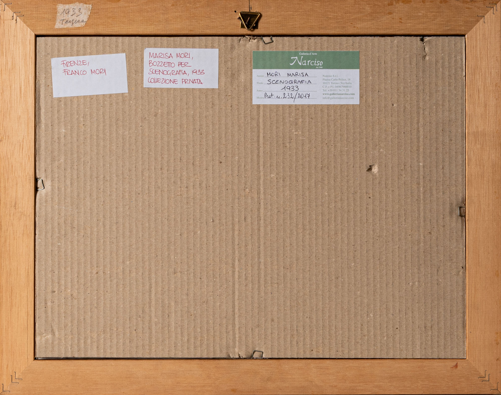 MARISA MORI(1900 - 1985)Senza titolo (Bozzetto per scenografia)1933Tecnica mista su carta22 x 27,5 cmFirmata e datata in basso a destraPROVENIENZA:Galleria d'Arte Narciso, Torino (etichetta al retro)Collezione privata, Torino