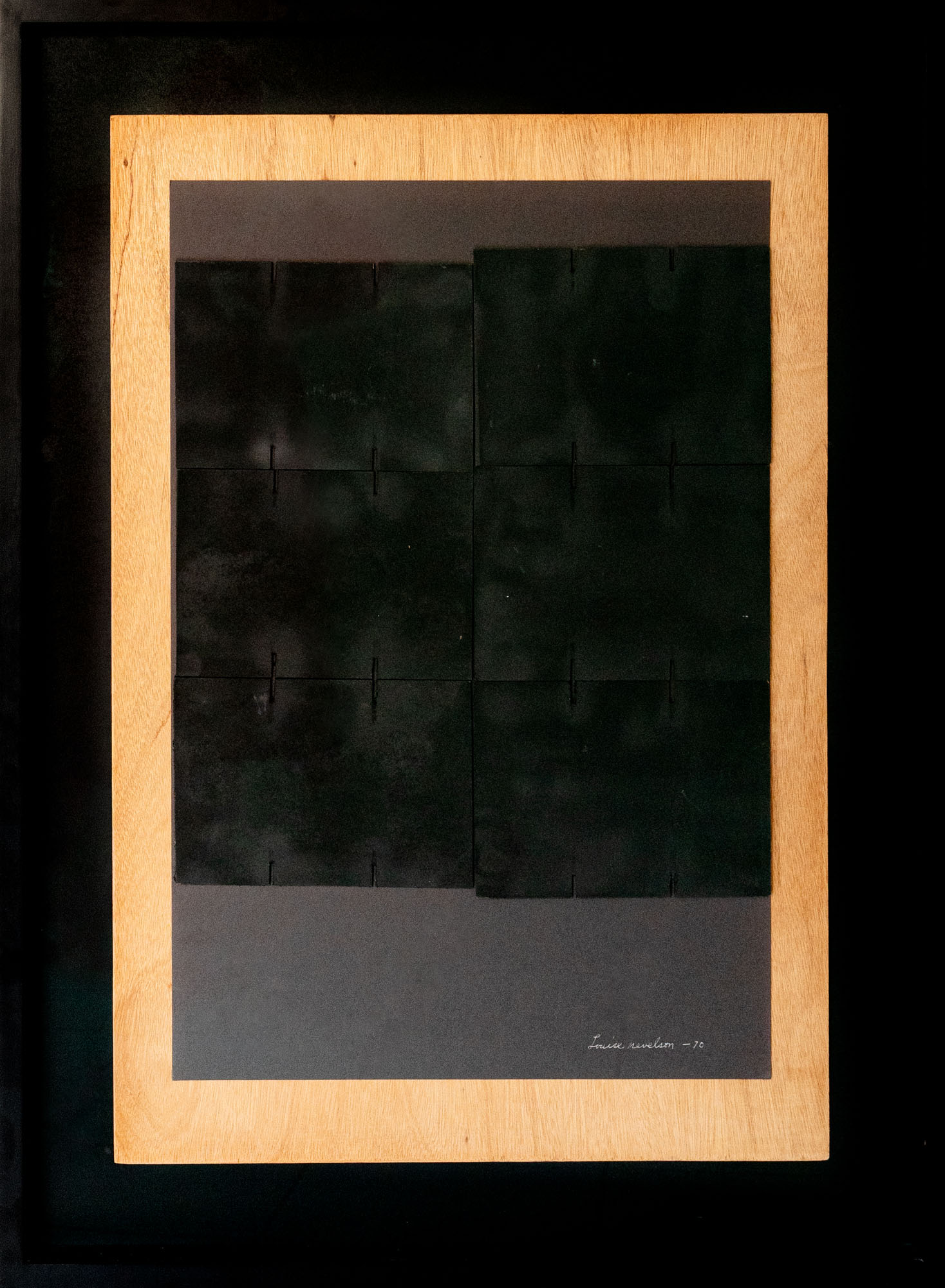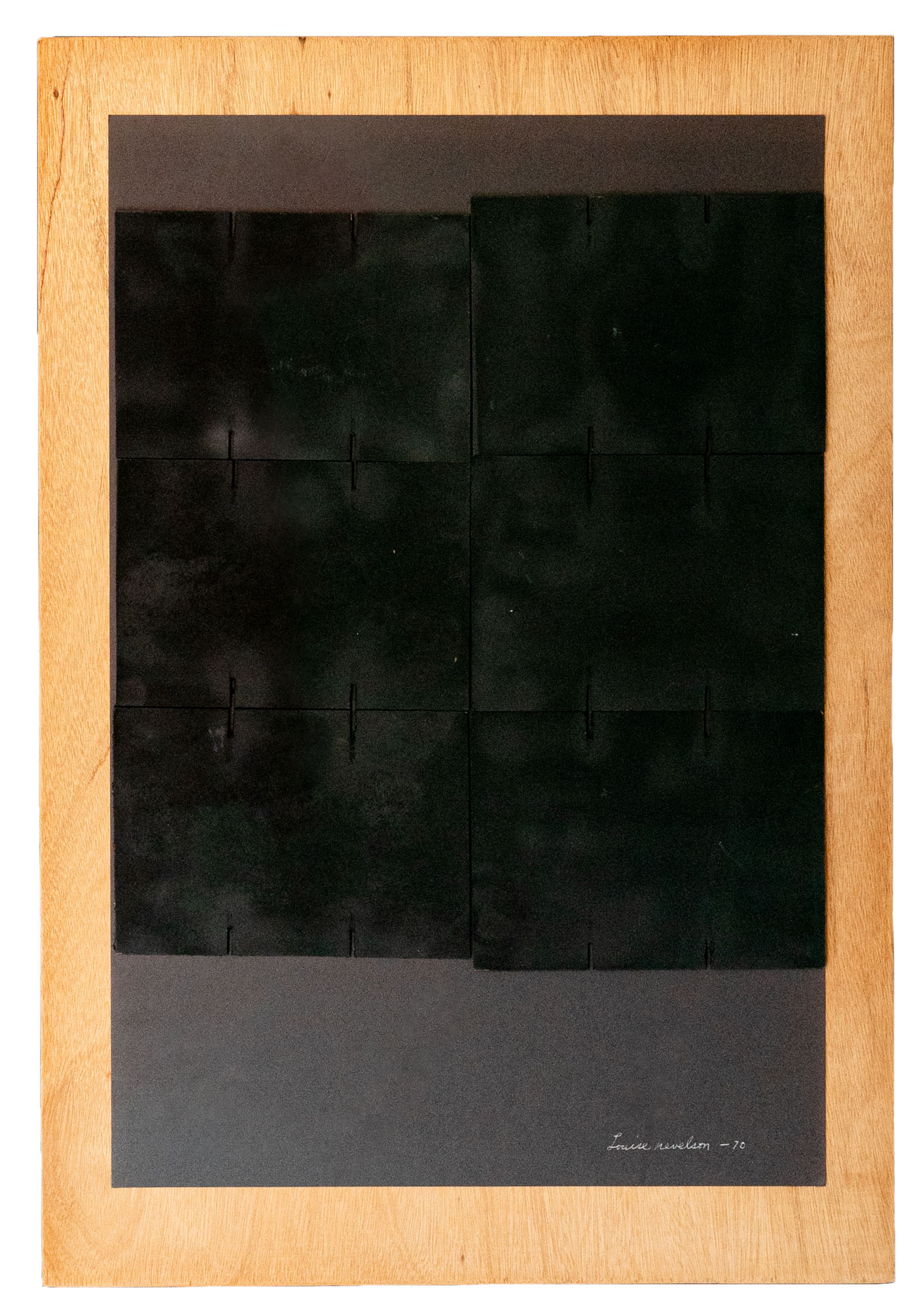 LOUISE NEVELSON(1899 - 1988)Senza titolo1970Elementi in legno dipinto e cartone applicati su tavola88 x 60 cmFirmato e datato in basso a destraOpera accompagnata da certificato di autenticità a cura della Cardi Gallery, MilanoPROVENIENZA:Galerie Gmurzynska, Zurigo (etichetta al retro)Cardi Gallery, MilanoCollezione privata, Milano