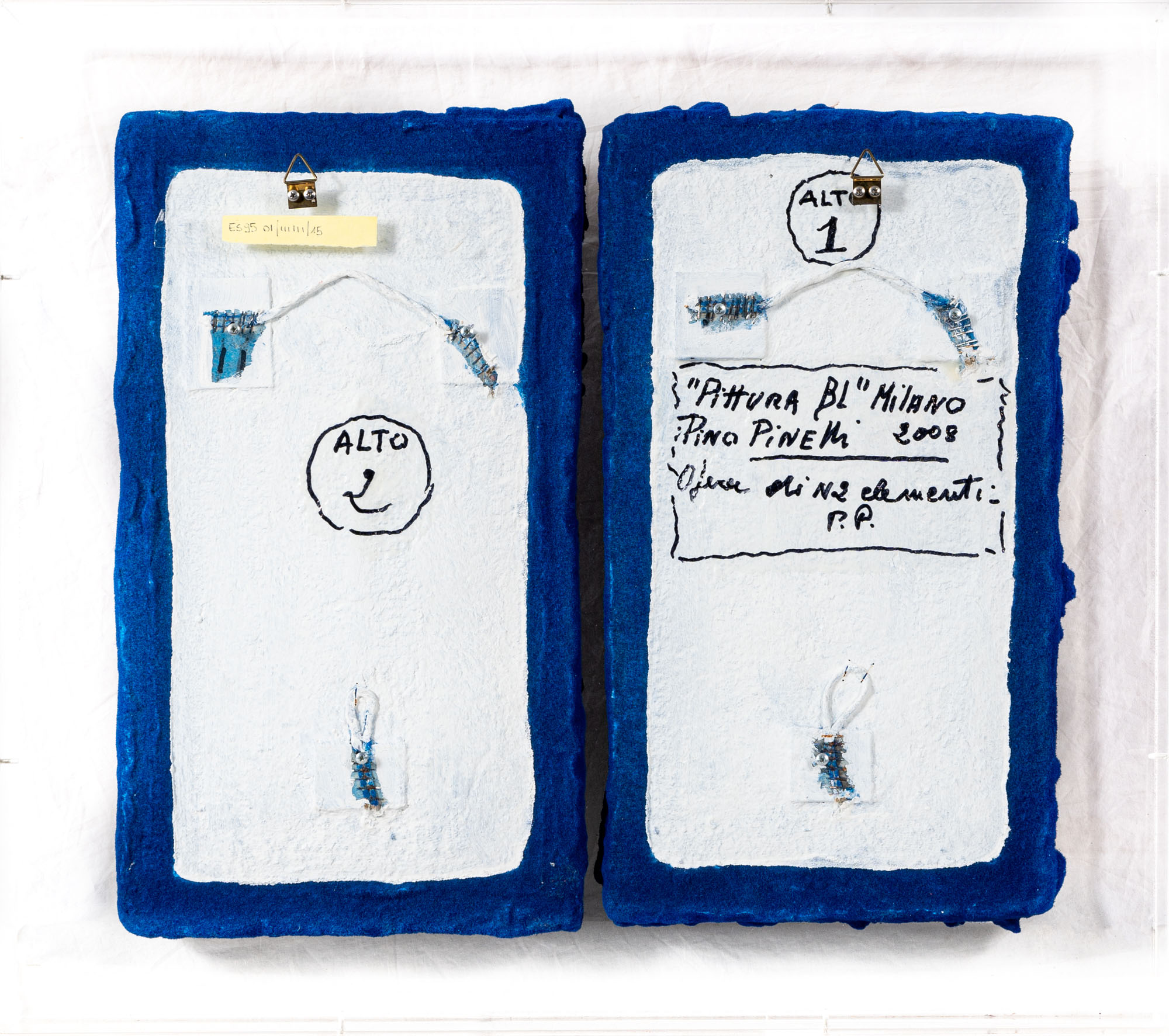 PINO PINELLI(1938 - 2024)Pittura BL2008Tecnica mista in due elementi entro teca in plexiglasOgni elemento misura 41 x 23 x 4 cm circaFirma, data e titolo al retroOpera accompagnata da certificato di autenticità a cura dell'Archivio Pino Pinelli, MilanoPROVENIENZA:Galleria Santo Ficara, FirenzeCollezione privata, MilanoESPOSIZIONI:22 ottobre - 26 novembre 2008, Pino Pinelli Pittura, Galleria Santo Ficara, FirenzeBIBLIOGRAFIA:F. Pola, Pino Pinelli Pittura, Edizione Santo Ficara, Firenze, p. 49 (ill.)