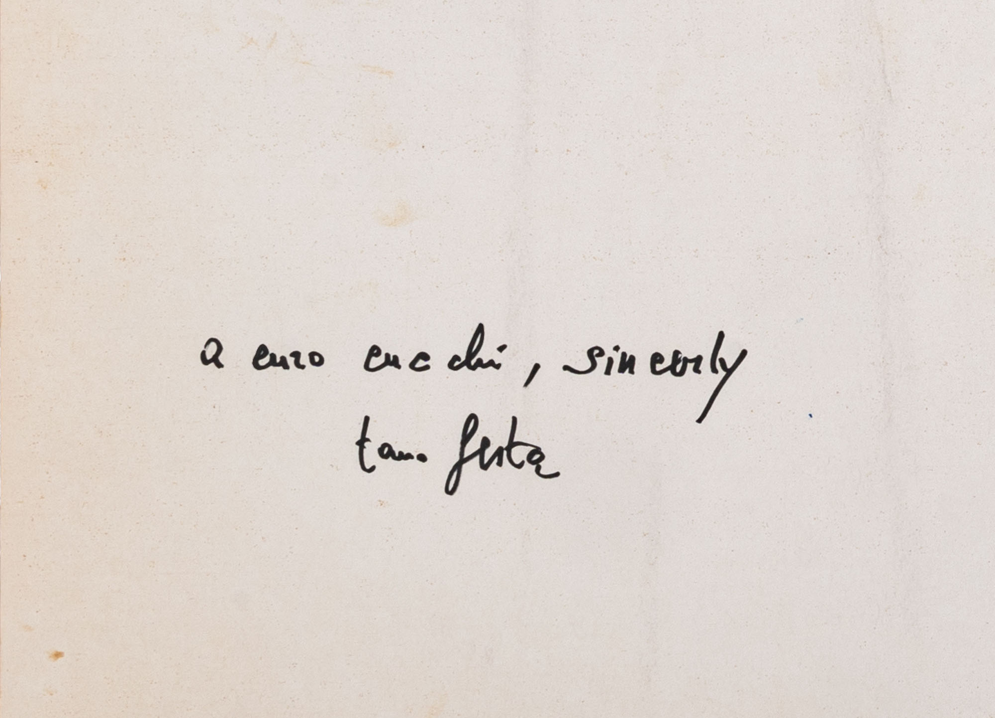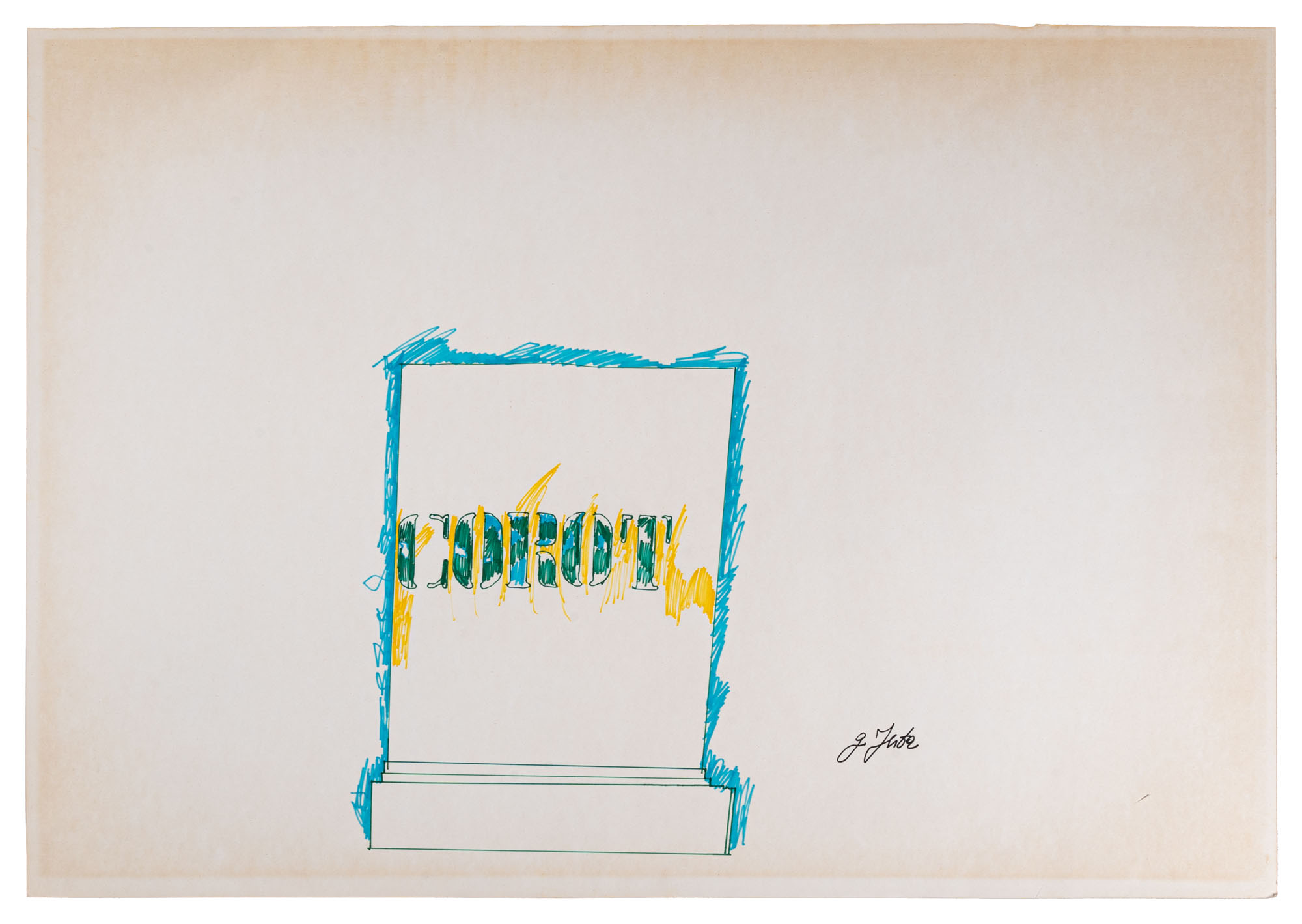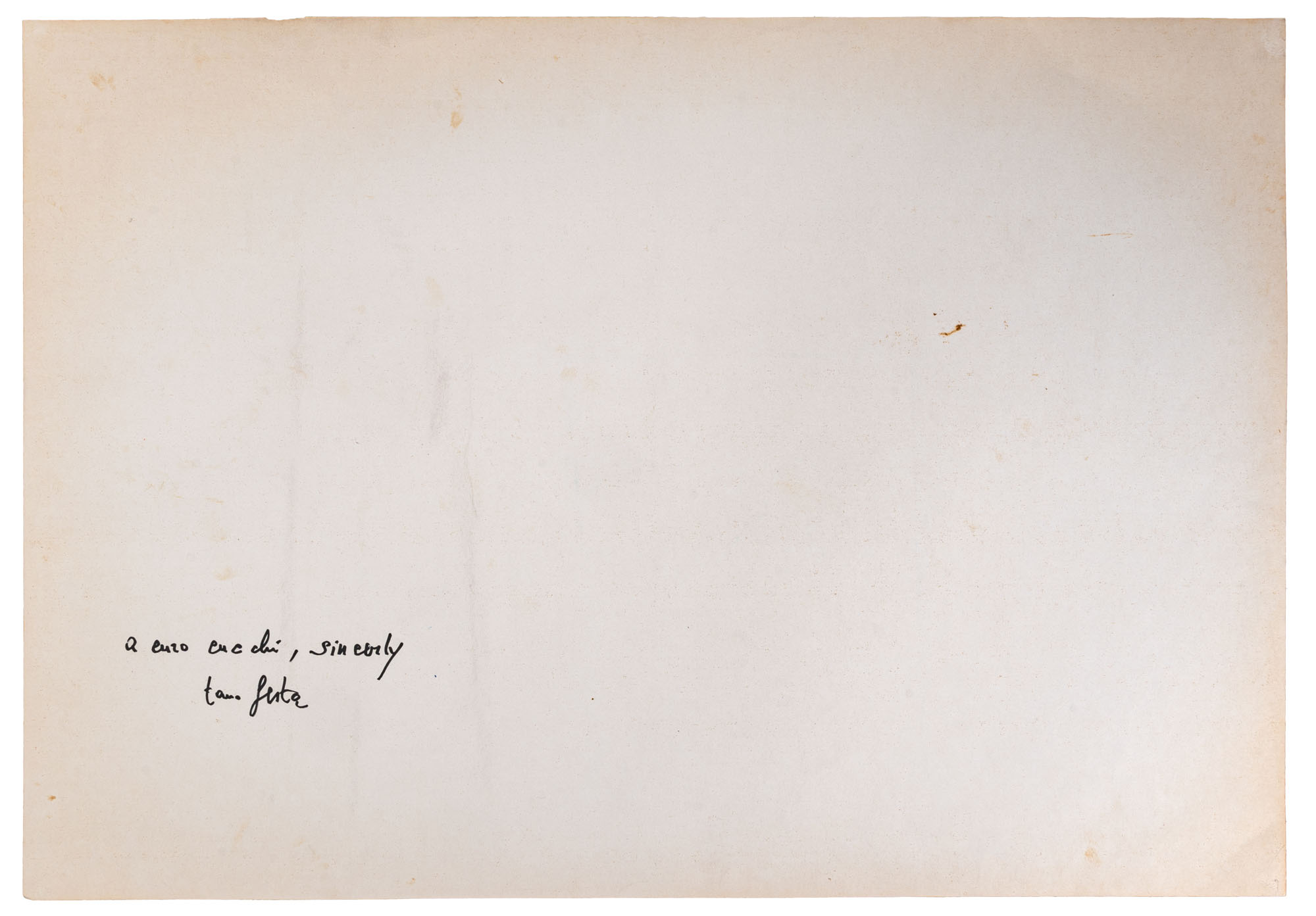 TANO FESTA(1938 - 1988)Corot1975Pennarello su carta70 x 100 cmFirmato in basso a destraDedicato a Enzo Cucchi al retroOpera accompagnata da certificato di autenticità a cura dell'Archivio Generale dell'Opera di Tano Festa, PernumiaPROVENIENZA:Collezione Enzo Cucchi (ricevuto direttamente dall'artista)Collezione privata, Ancona (ricevuto da Enzo Cucchi)