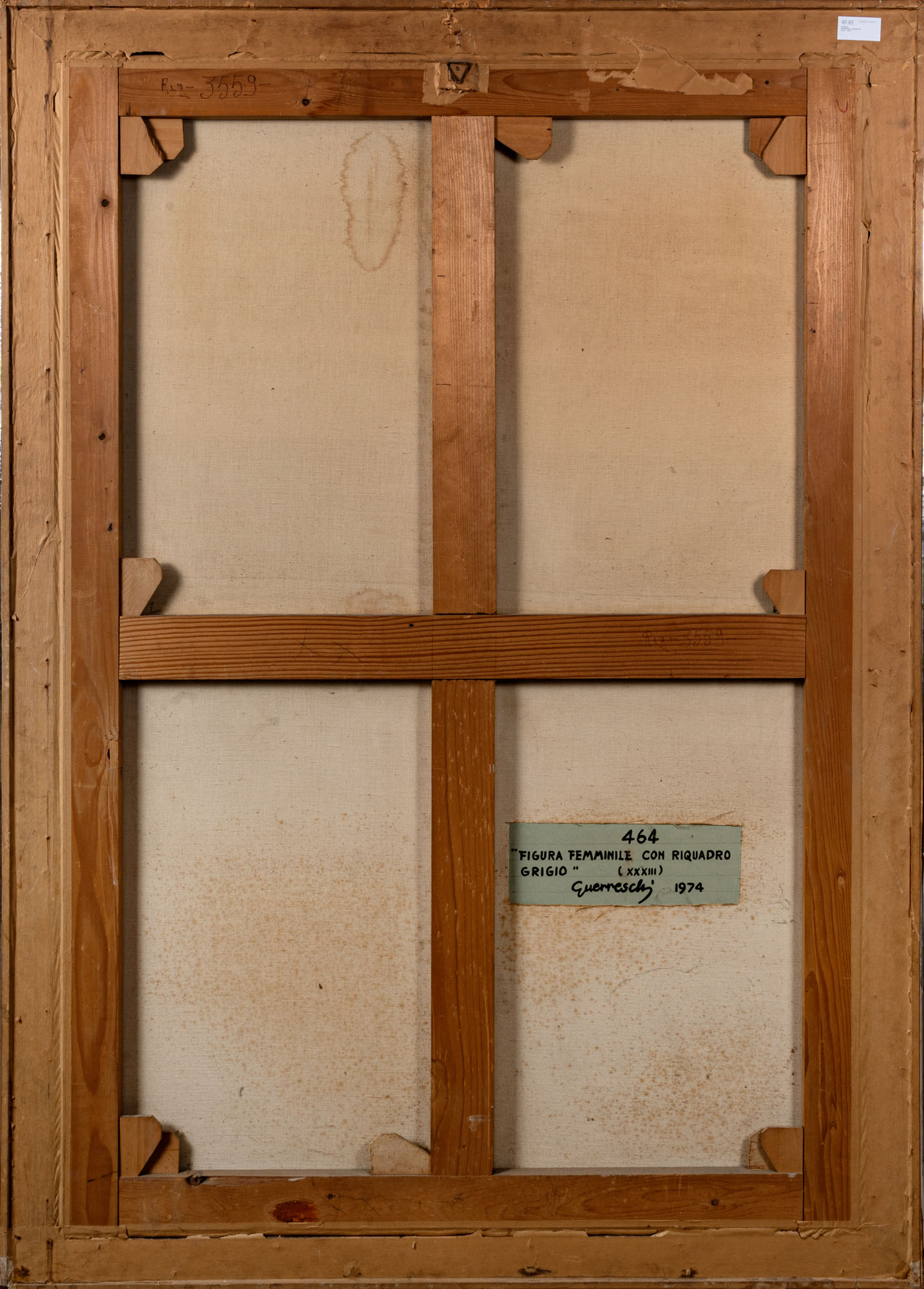 GIUSEPPE GUERRESCHI(1929 - 1985)Figura femminile con riquadro grigio1974Tecnica mista su cartone applicato su tela145 x 99 cmFirmato e datato in basso a destraFirma, data e titolo al retroPROVENIENZA:Collezione privata, Modena