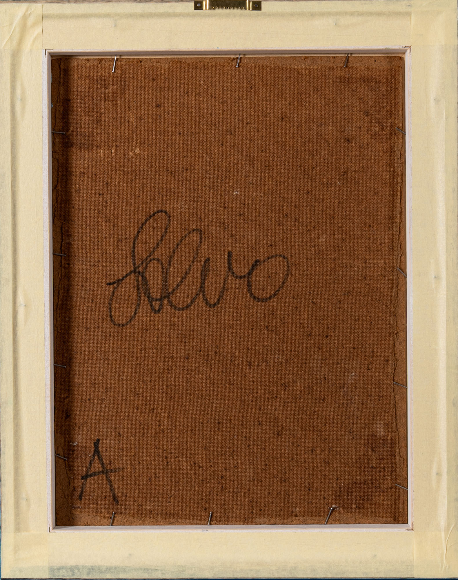 SALVO(1947 - 2015)Senza titolo1994Olio su tavola40 x 30 cmFirma al retroOpera accompagnata da certificato di autenticità a cura dell'Archivio Salvo, TorinoOpera accompagnata da autentica su fotografia firmata dall'artistaPROVENIENZA:Collezione privata, Verona