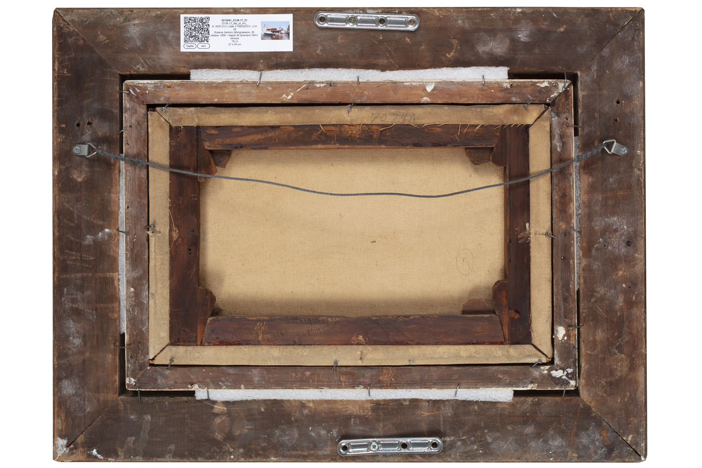 Elementi distintivi: sulla cornice, a matita, numero di inventario "7074A", forse apposto negli Stati Uniti; sul retro della cornice, segni di passaggi d'asta a gesso bianco