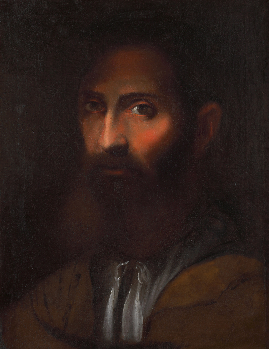 Per l'opera in scheda è stata suggerita una affinità con i dipinti di Girolamo da Carpi della metà del Cinquecento, per esempio il "Ritratto virile" (olio su tela, 76x95,5 cm), datato 1545-1549, proveniente dalla collezione Sacchetti e conservato presso la Pinacoteca capitolina (Galleria Cini, inv. PC 206).
