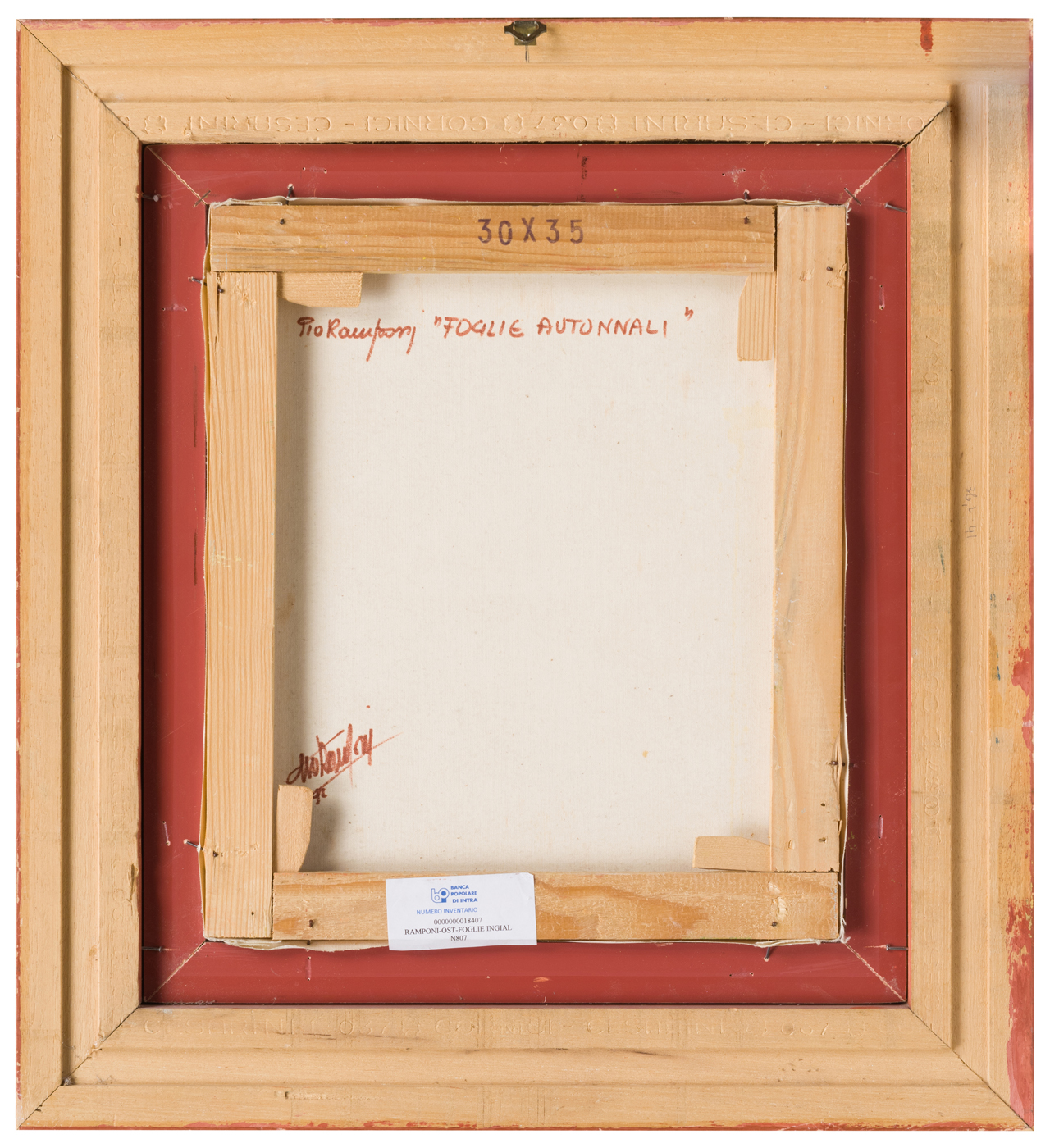 Elementi distintivi: sul verso, etichetta della Banca Popolare di Intra con riferimenti di inventario