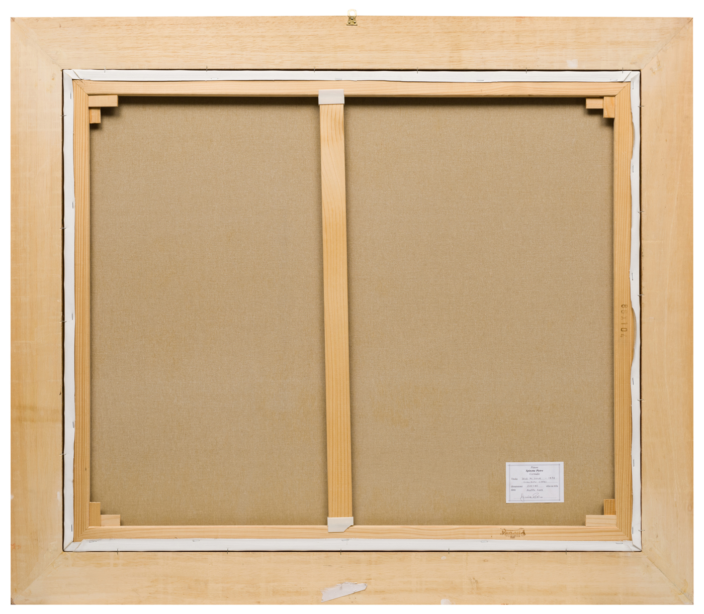 Elementi distintivi: sul verso, etichetta dell’artista con dati relativi all’opera