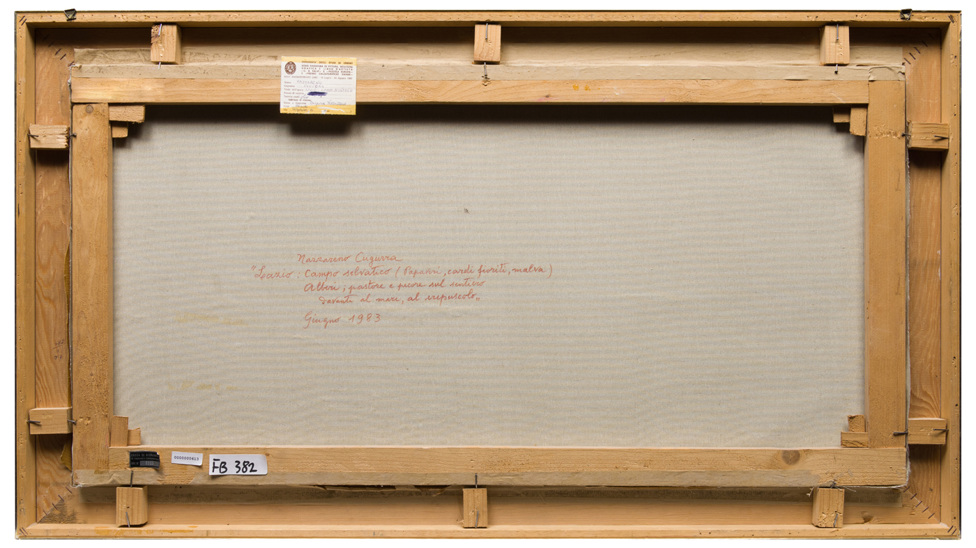 Elementi distintivi: sul verso, etichetta Cassa di Risparmio di Fabriano e Cupramontana con riferimenti di inventario; etichetta di esposizione “Università degli studi di Urbino XXXIII Rassegna di pittura, scultura grafica e libro d’artista", Sassoferrato, 10 luglio-28 agosto 1983