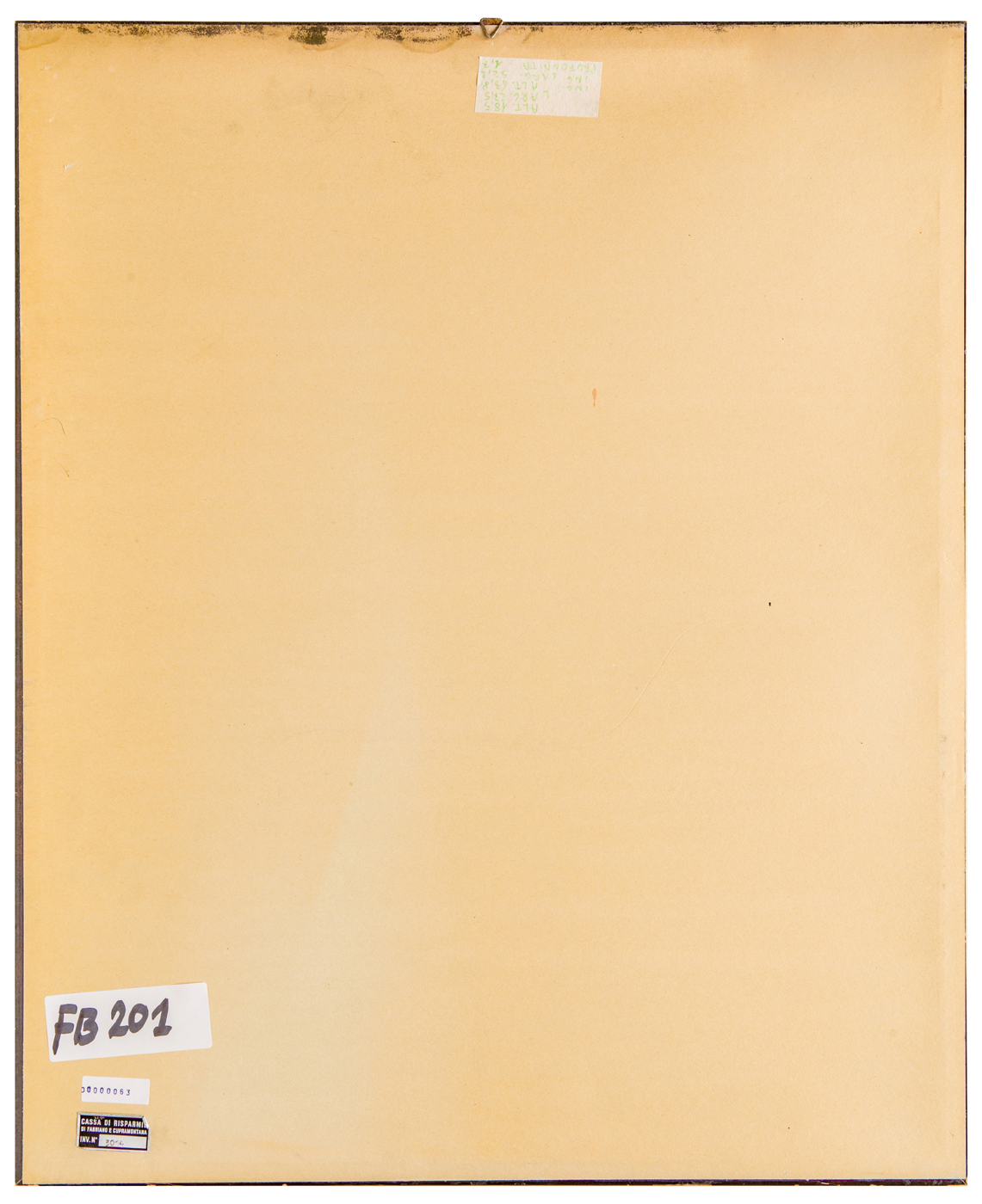 Elementi distintivi: sul verso, etichetta Cassa di Risparmio di Fabriano e Cupramontana con riferimenti di inventario