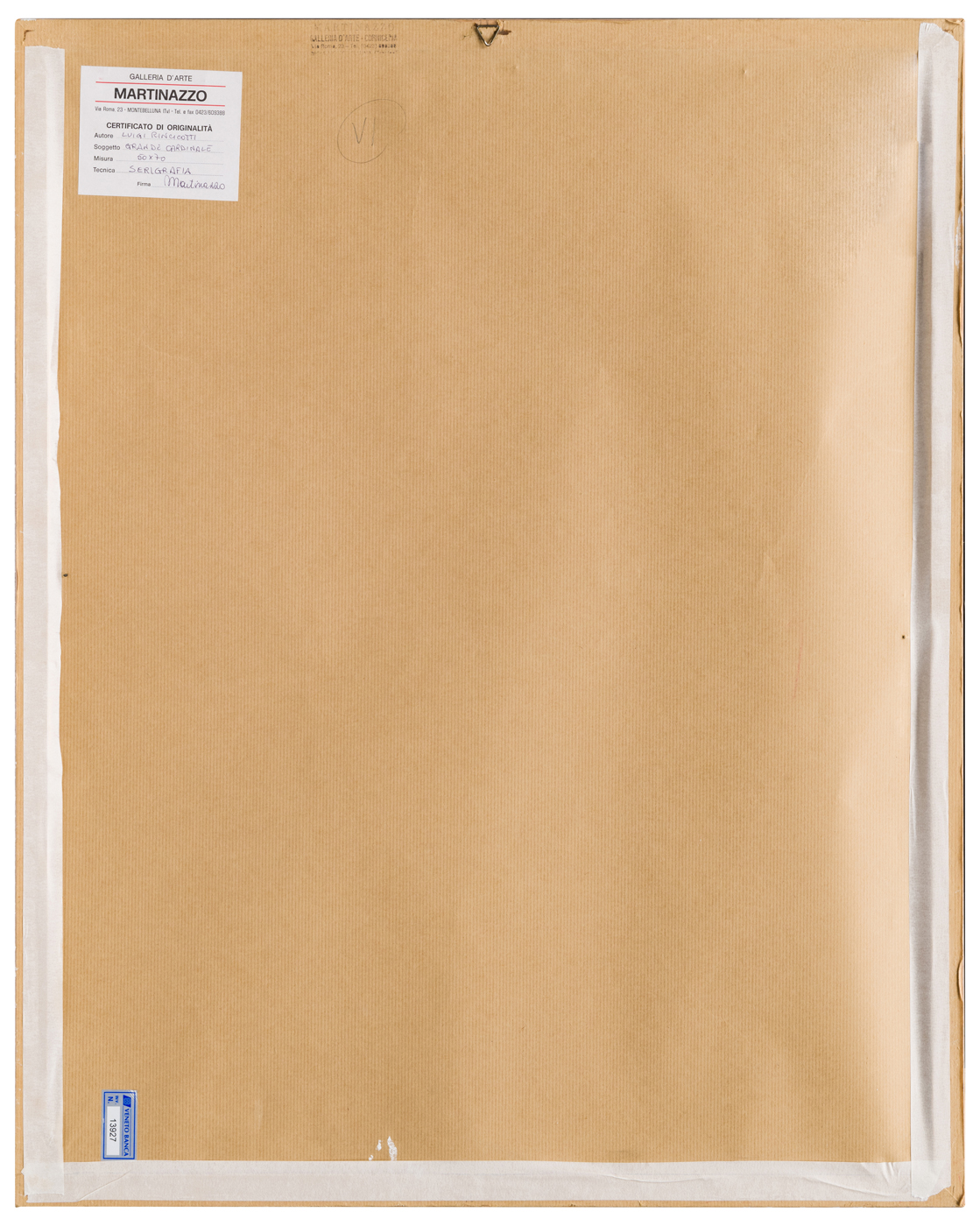 Elementi distintivi: sul verso, timbro della Galleria d’Arte Martinazzo; numero VI a penna; etichetta della Veneto Banca con riferimenti di inventario