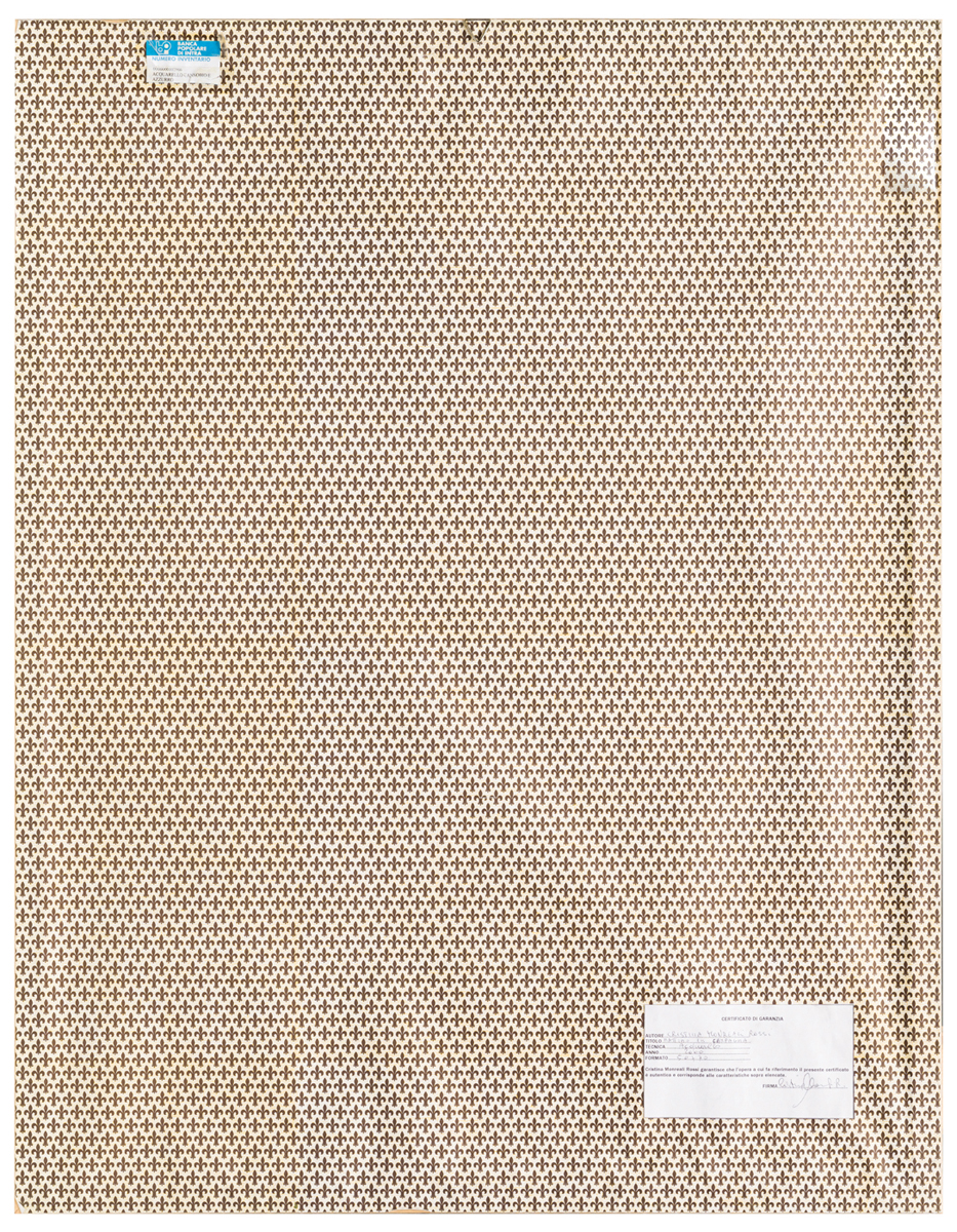 Certificati: sul verso, certificato di autenticità con nome dell’artista, titolo, tecnica, anno, dimensioni, firmato dall’artista