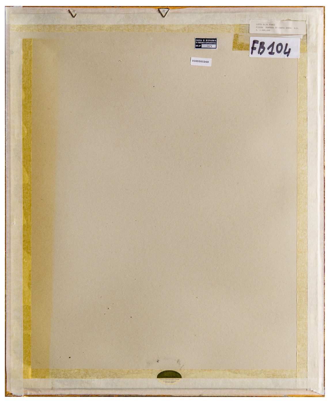 Elementi distintivi: etichetta anonima con dati dell'opera; etichetta Cassa di Risparmio di Fabriano e Cupramontana con riferimenti di inventario