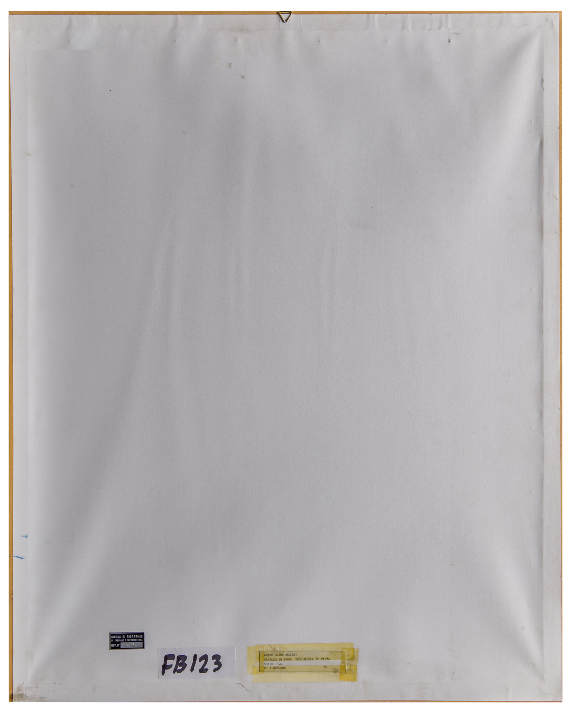 Elementi distintivi: sul verso, etichetta Cassa di Risparmio di Fabriano e Cupramontana con riferimenti di inventario; etichetta anonima con dati dell'opera