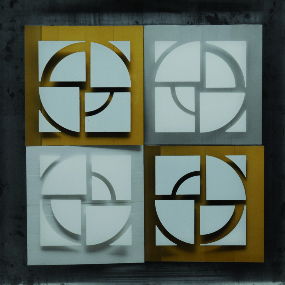 Firmato. GIOVANNI CAMPUS (1929) - " Struttura modulare continua ", 1972, Seri e tecnica mista su metallo e metacrilato - 4 immagini per variazione visuale su piani differenziati, cm. 51 x 51 x 4. Firmato sul retro. Autentica dell'artista su fotografia. Prov. Collezione Privata
