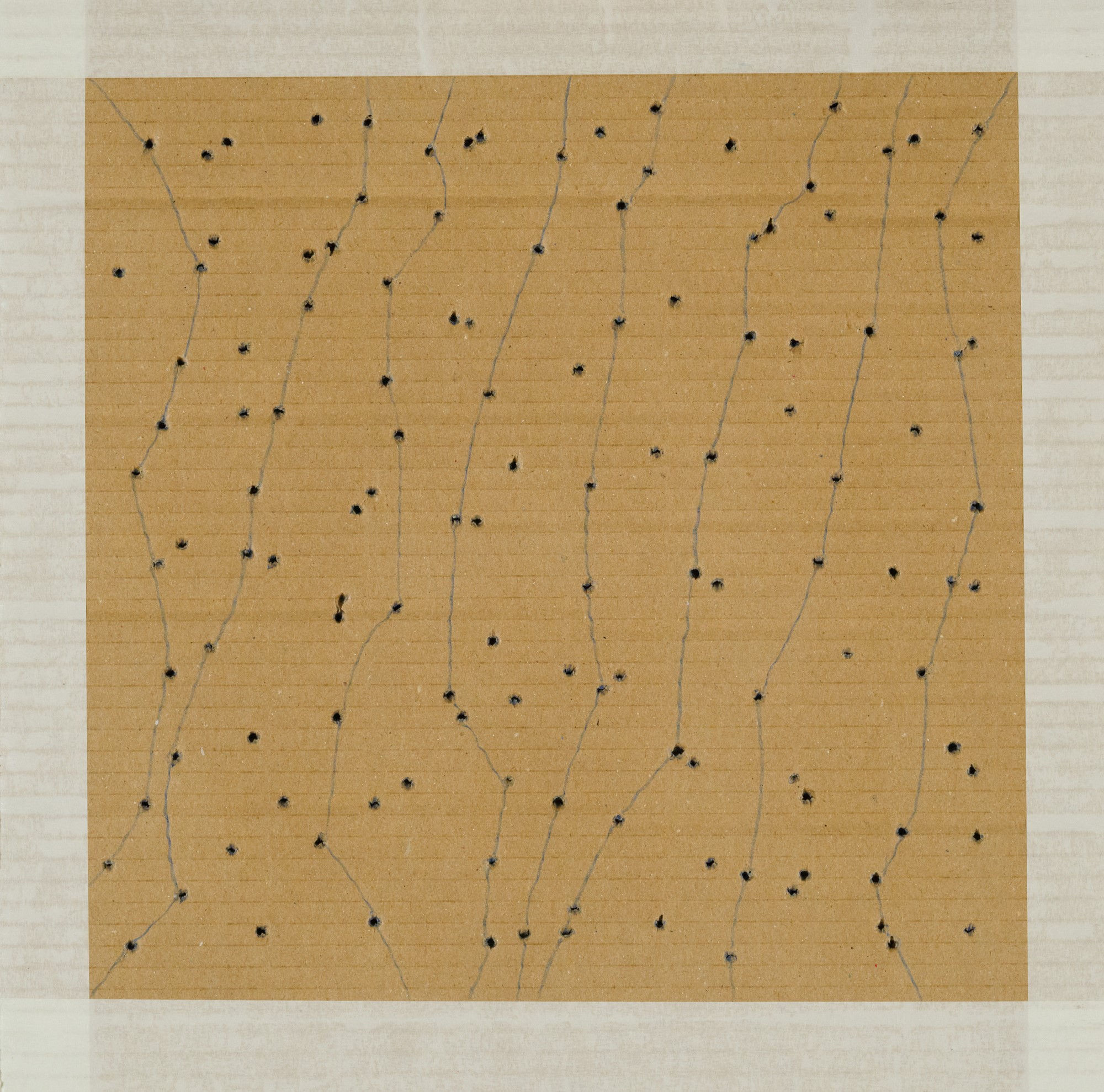 Biro,scotch ed interventi su cartone cm. 39,5x39,5