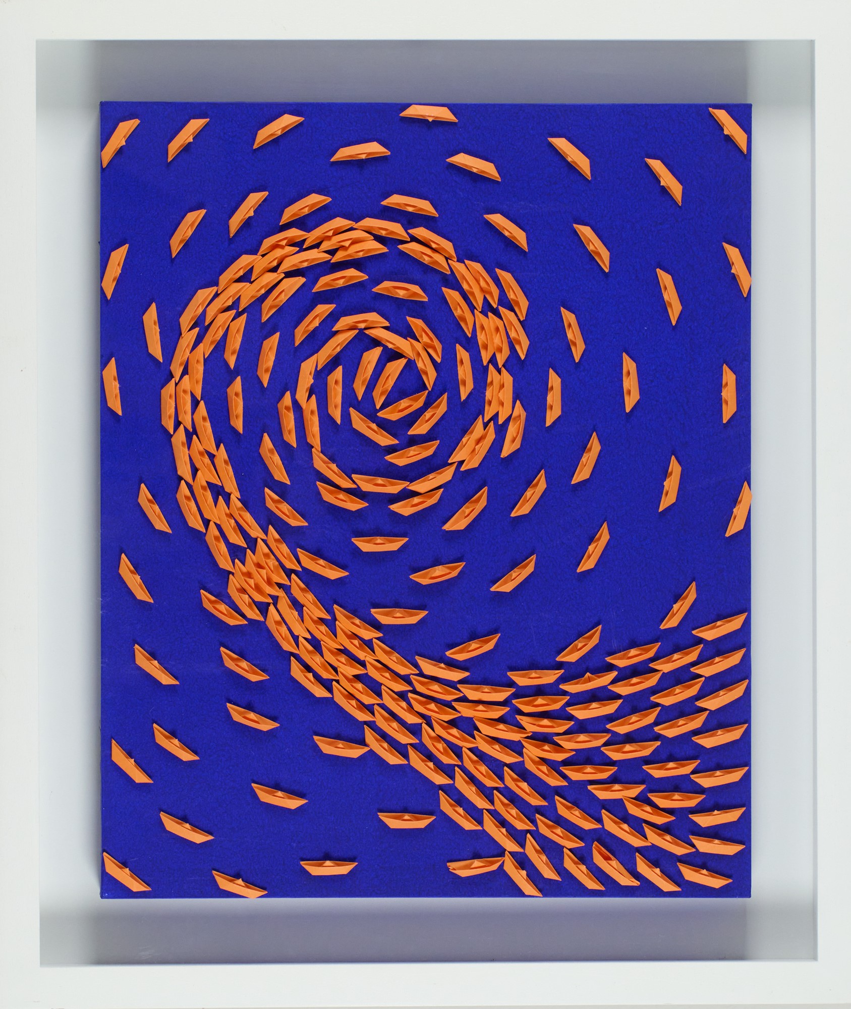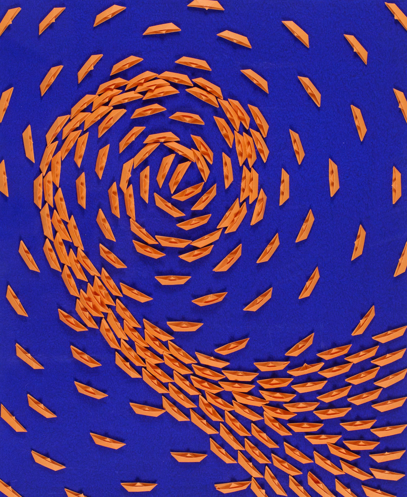 Riccardo Gusmaroli (Verona, 1963 - ) Vortice arancio Barche di carta su tela...