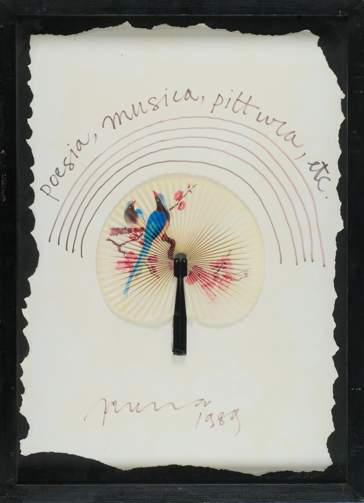 Ventaglio e tecnica mista applicata su tavola cm. 70x50