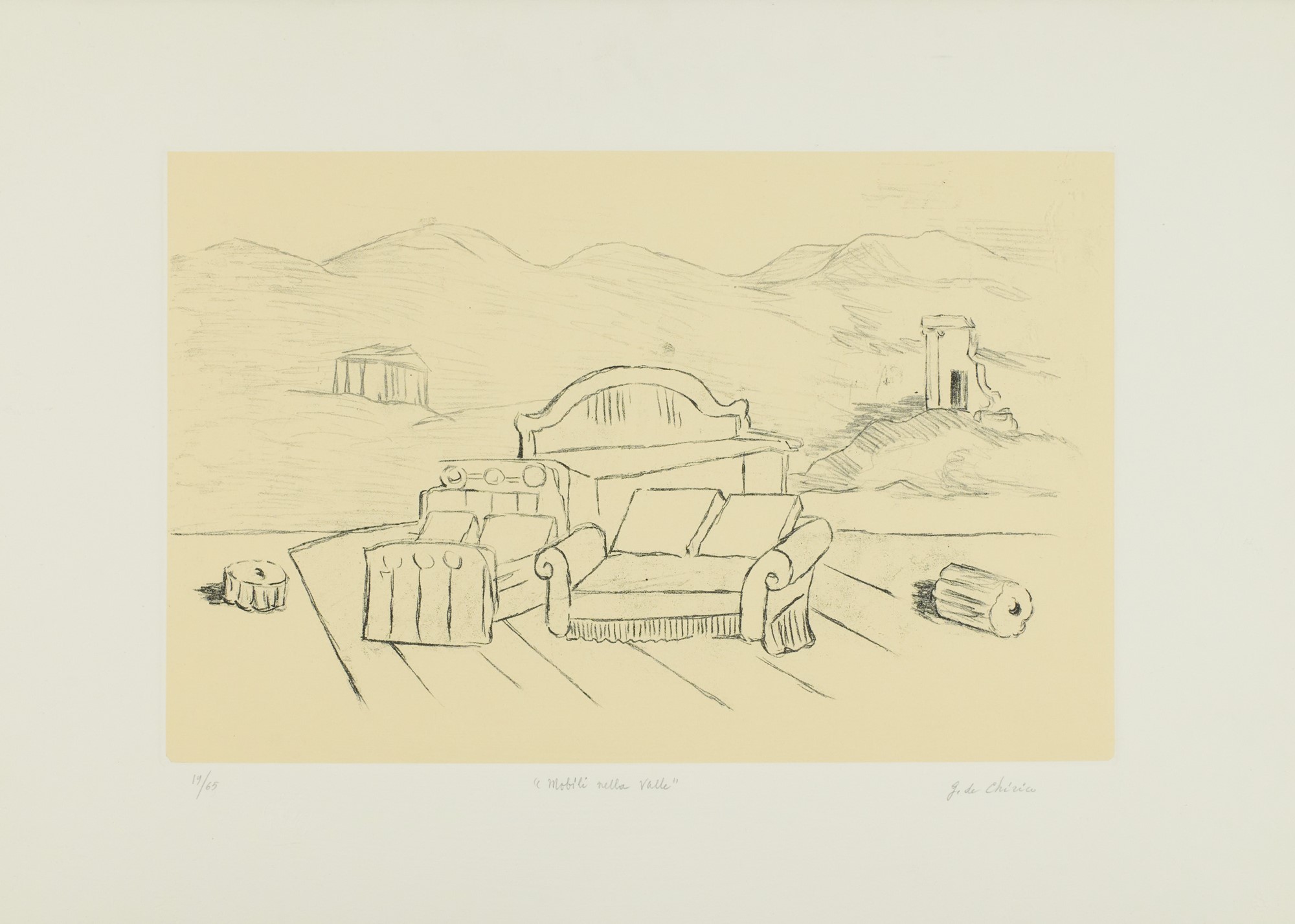 Giorgio De Chirico (Volos, 1888 - Roma, 1978) Mobili nella valle 1971...