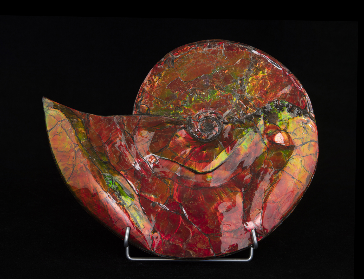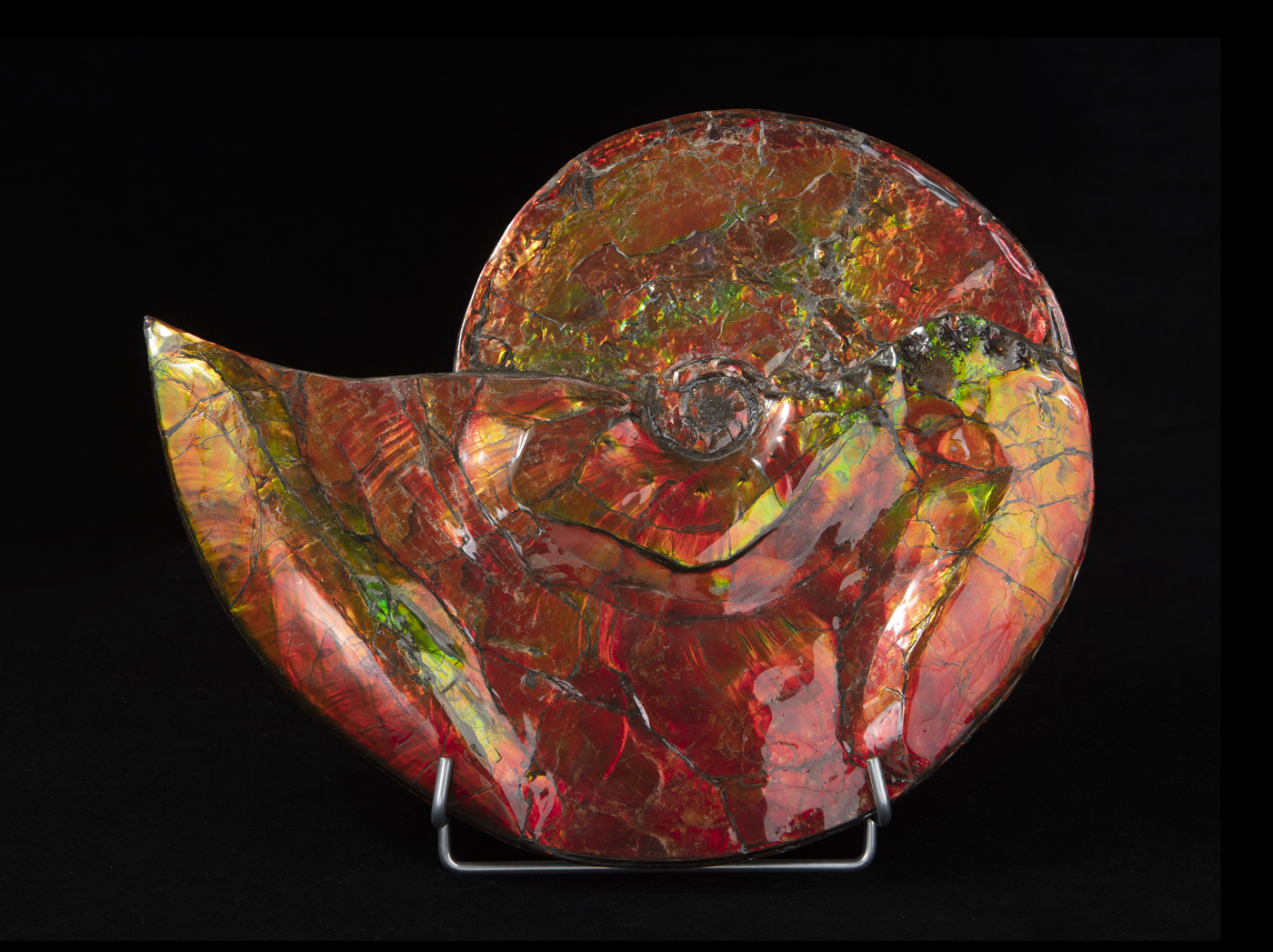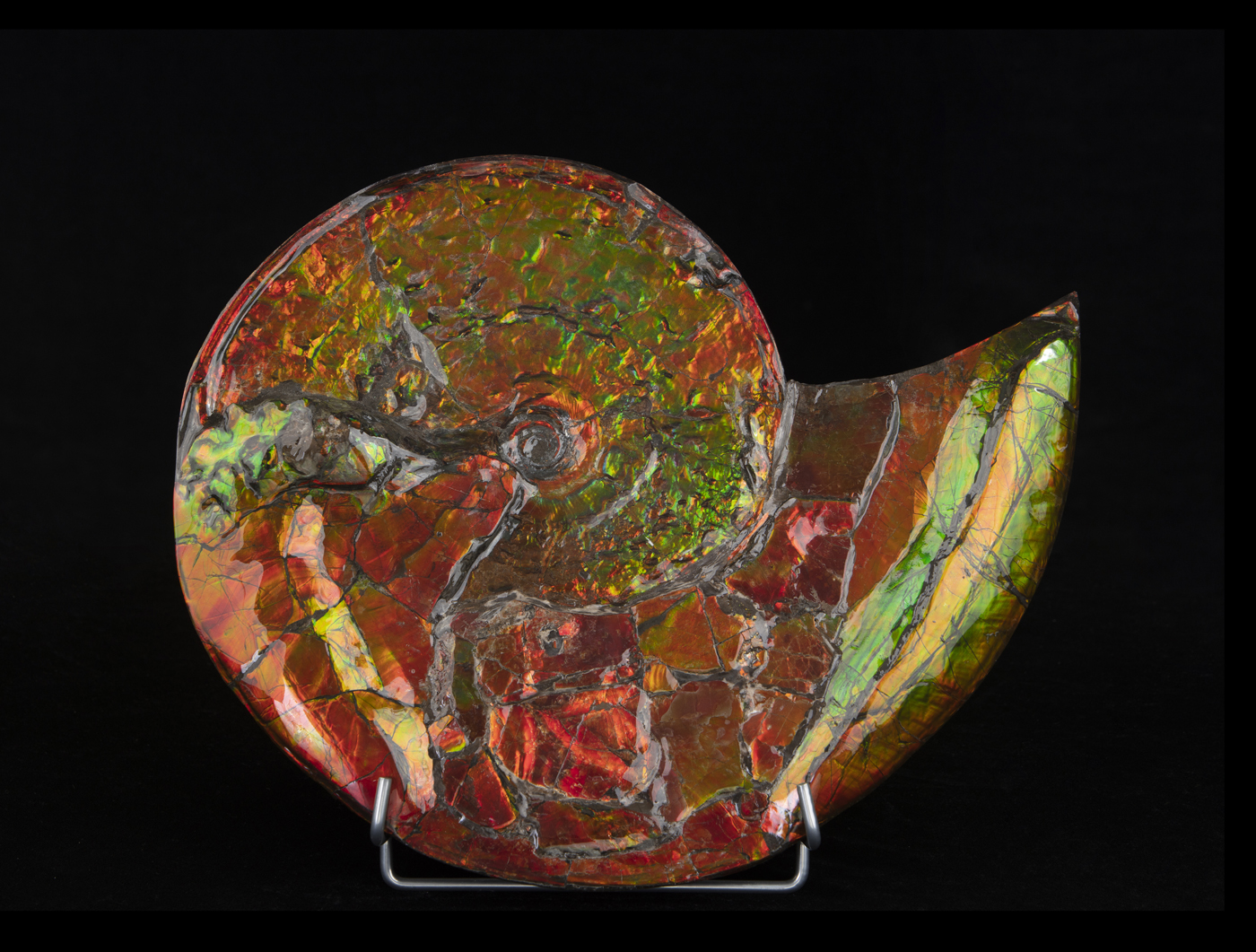 Nel 1981 la World Jewellery Confederation (CIBJO) e il Gemmological Istitute of America hanno attribuito alle ammoniti così mineralizzate - dette ammoliti - lo status di gemma. Il peso si misura infatti in carati, come per i diamanti, ma le ammoliti sono molto più rare: in una tonnellata di materiale sedimentario rimosso si trovano, infatti, in media, 0,6 kt di ammolite contro i 1,5 kt di diamante. I particolari colori iridescenti sprigionati da questa conchiglia sono dovuti alla rifrazione della luce sui diversi livelli del guscio aragonitico. Ogni colore rappresenta un diverso strato con cui la luce origina uno spettro quasi completo del visibile. Rarissimo anche in ambito museale, questo fossile minerale è conservato in un esemplare eccezionale con rifrazione blu presso il Museo Mineralogico Campano.
