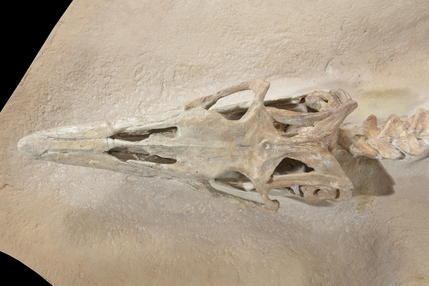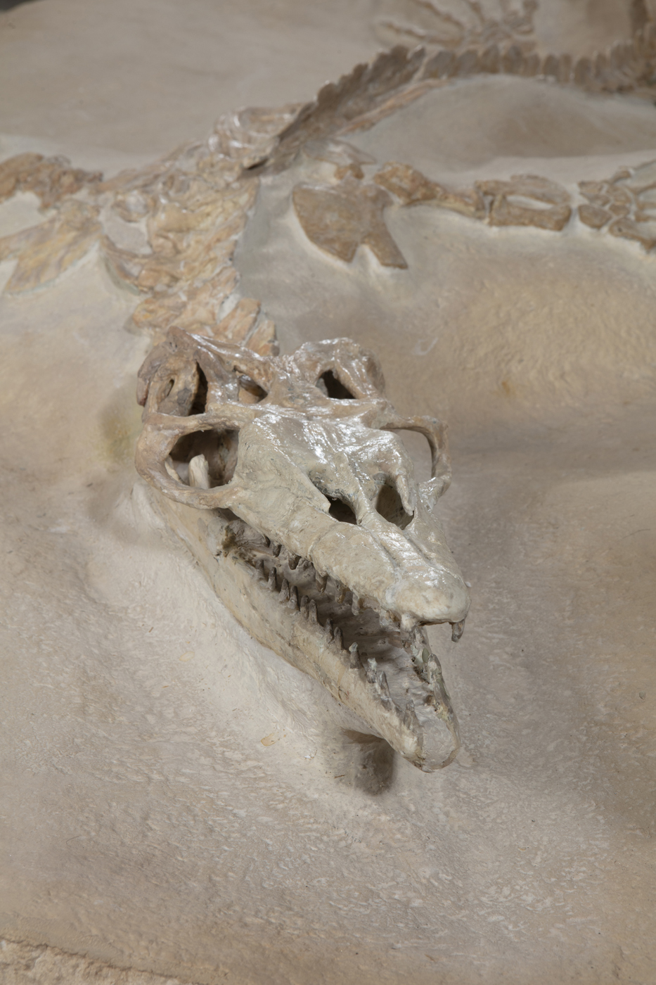 La grande famiglia dei mosasauri - il cui nome significa "lucertola del fiume Mosa" - raccoglie un gruppo estinto di rettili acquatici squamati, vissuto, a larghe maglie, tra 82 e 66 milioni di anni fa durante le fasi campanania e maastrichtiana del tardo cretacico. I primi fossili di mosasauro furono trovati come teschi in una cava di gesso vicino alla città olandese di Maastricht alla fine delxVIII secolo e inizialmente si pensava fossero coccodrilli o balene. Un teschio scoperto intorno al 1780 fu soprannominato il "grande animale di Maastricht", ed ebbe larghissima risonanza scientifica. Nel 1808, il naturalista Georges Cuvier concluse che apparteneva a una gigantesca lucertola marina con somiglianze con le lucertole attuali ma per il resto diversa da qualsiasi animale vivente conosciuto. Questo concetto era rivoluzionario all'epoca e contribuì a sostenere le idee di estinzione ed evoluzione allora in via di sviluppo. William Daniel Conybeare nel 1822 inventò il nome "mosasaurus" in riferimento alla sua origine in depositi fossili vicino al fiume Mosa. La pelle squamata dei mosasauri mantiene viva, tra gli studiosi, la controversia se il gruppo sia da apparentare più strettamente alle lucertole o ai serpenti.