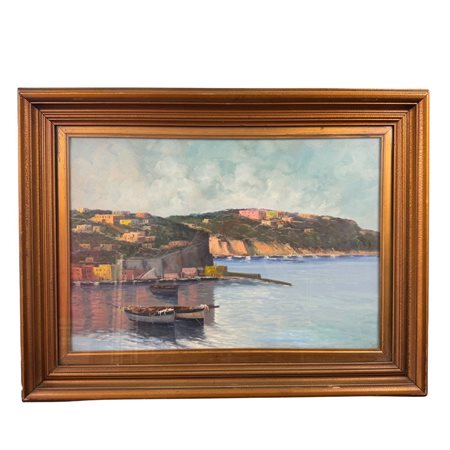 Dipinto olio su tela, periodo XX secolo scuola Italiana, raffigurante Marina.