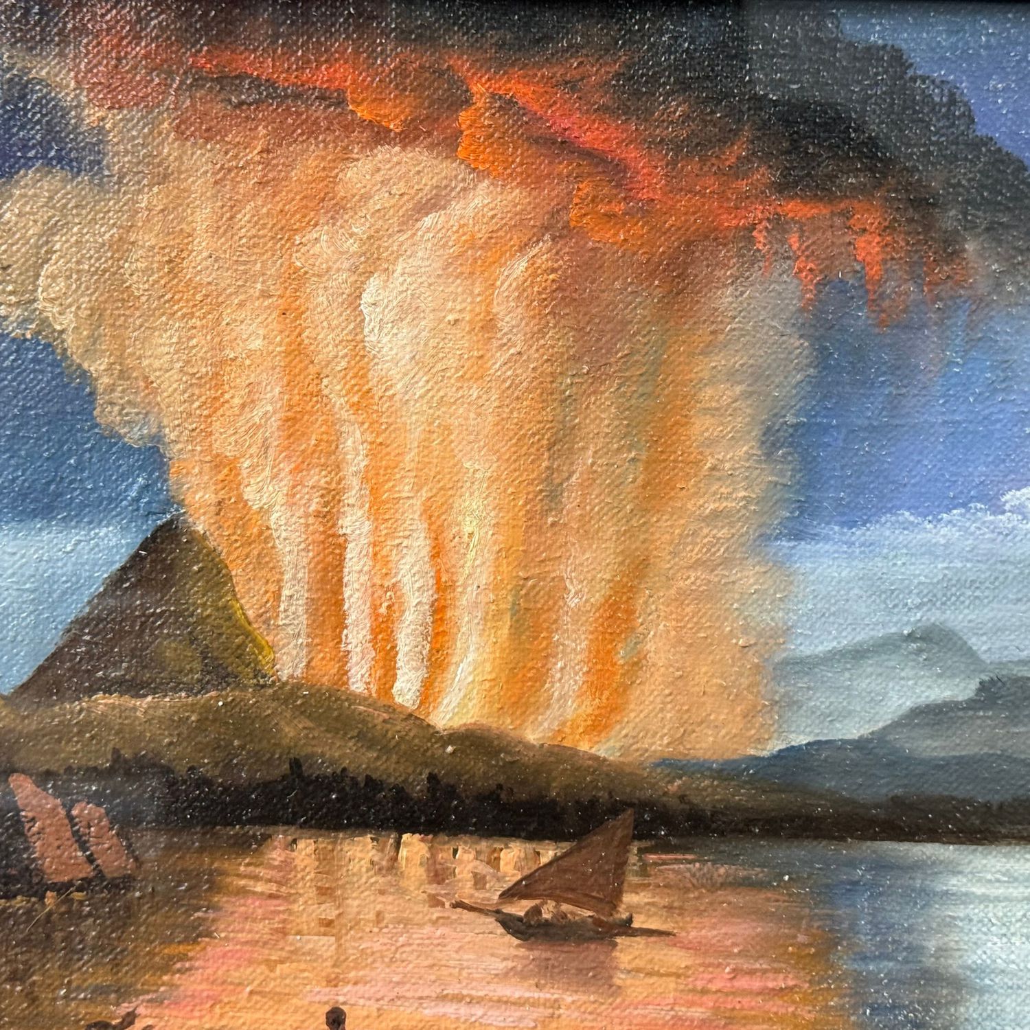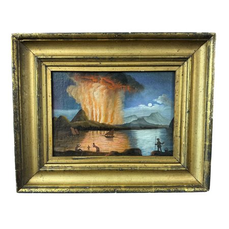 Dipinto olio su tela, periodo XX secolo scuola Italiana, raffigurante Eruzione del Vesuvio.