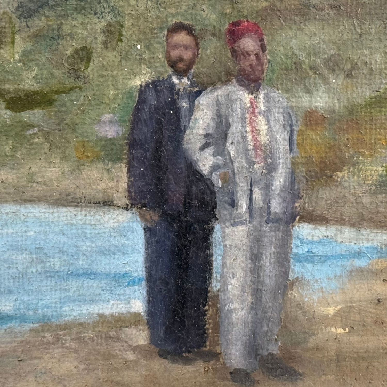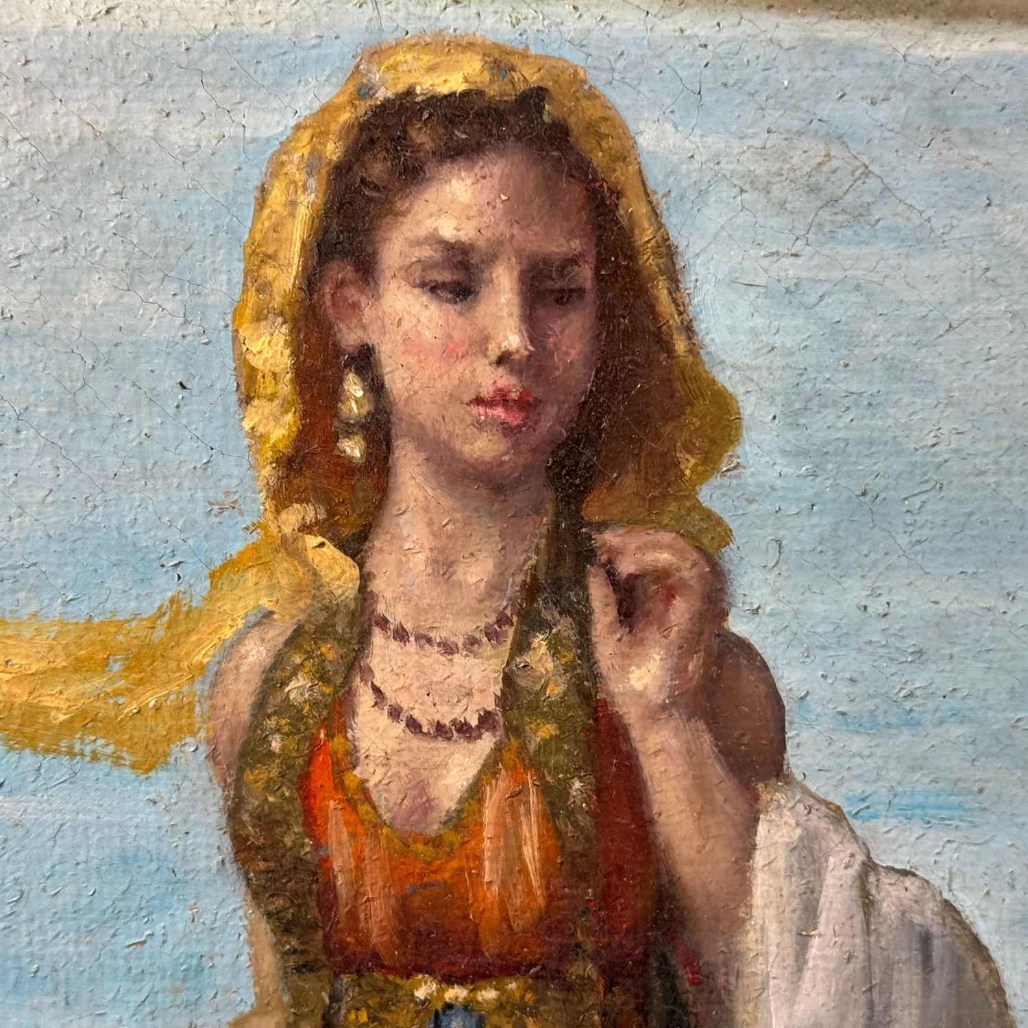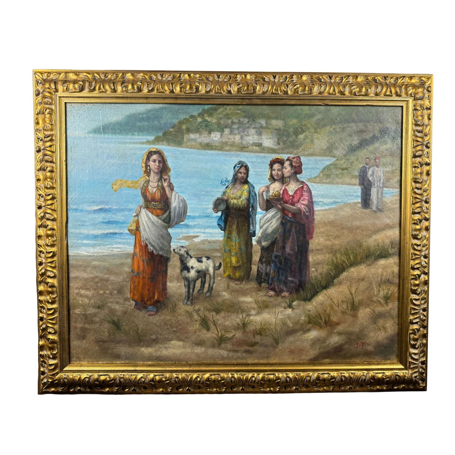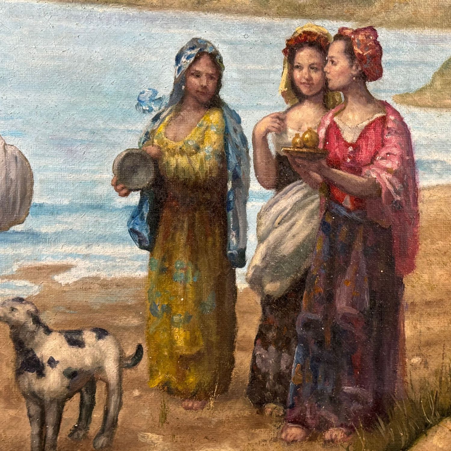 Dipinto olio su tela, periodo inizio XX secolo scuola Italiana, raffigurante Personaggi su marina.