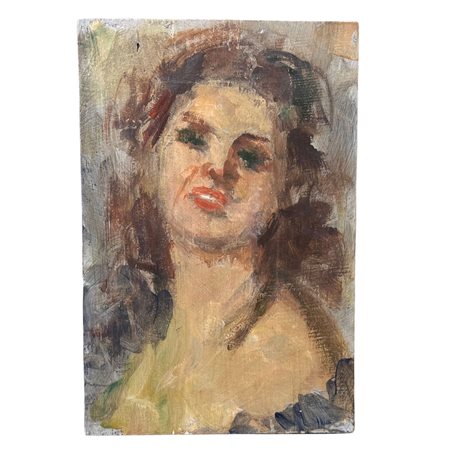 Piccolo dipinto olio su tavola, periodo XX secolo scuola Italiana, raffigurante Ritratto di donna.
