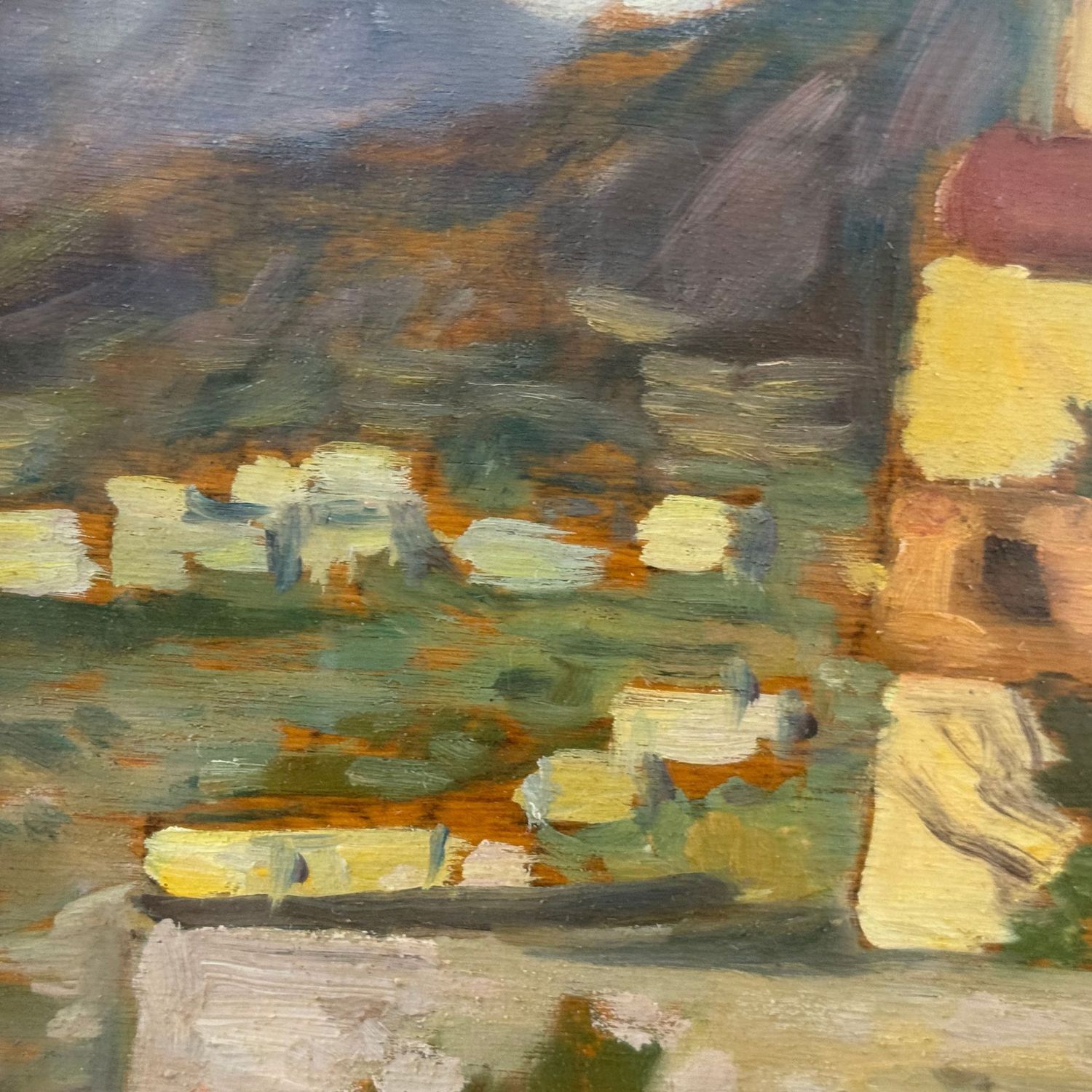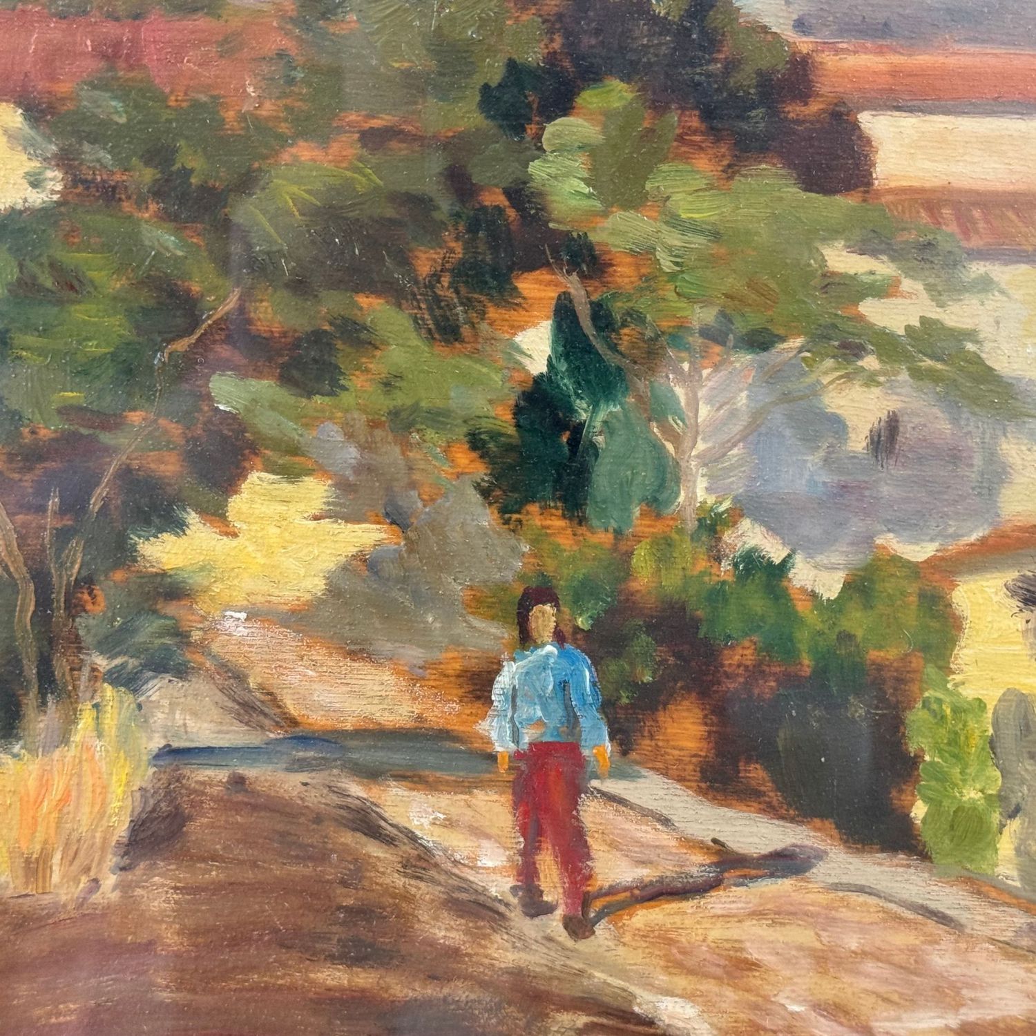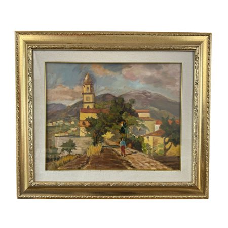 Dipinto olio su pannello, periodo XX secolo scuola italiana, raffigurante Strada di campagna.