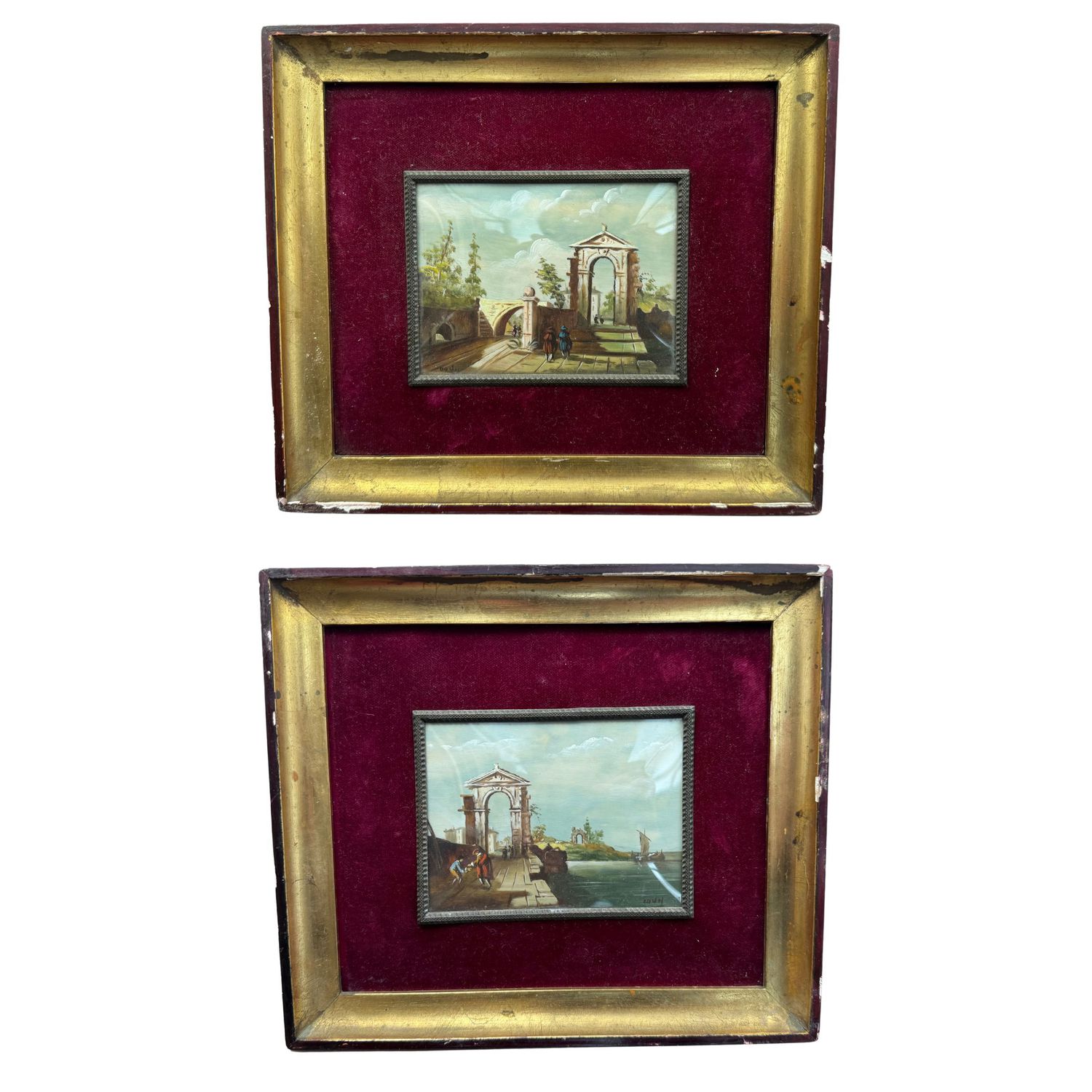 Coppia di dipinti olio su placca, periodo XX secolo scuola Italiana, raffiguranti Paesaggi.