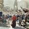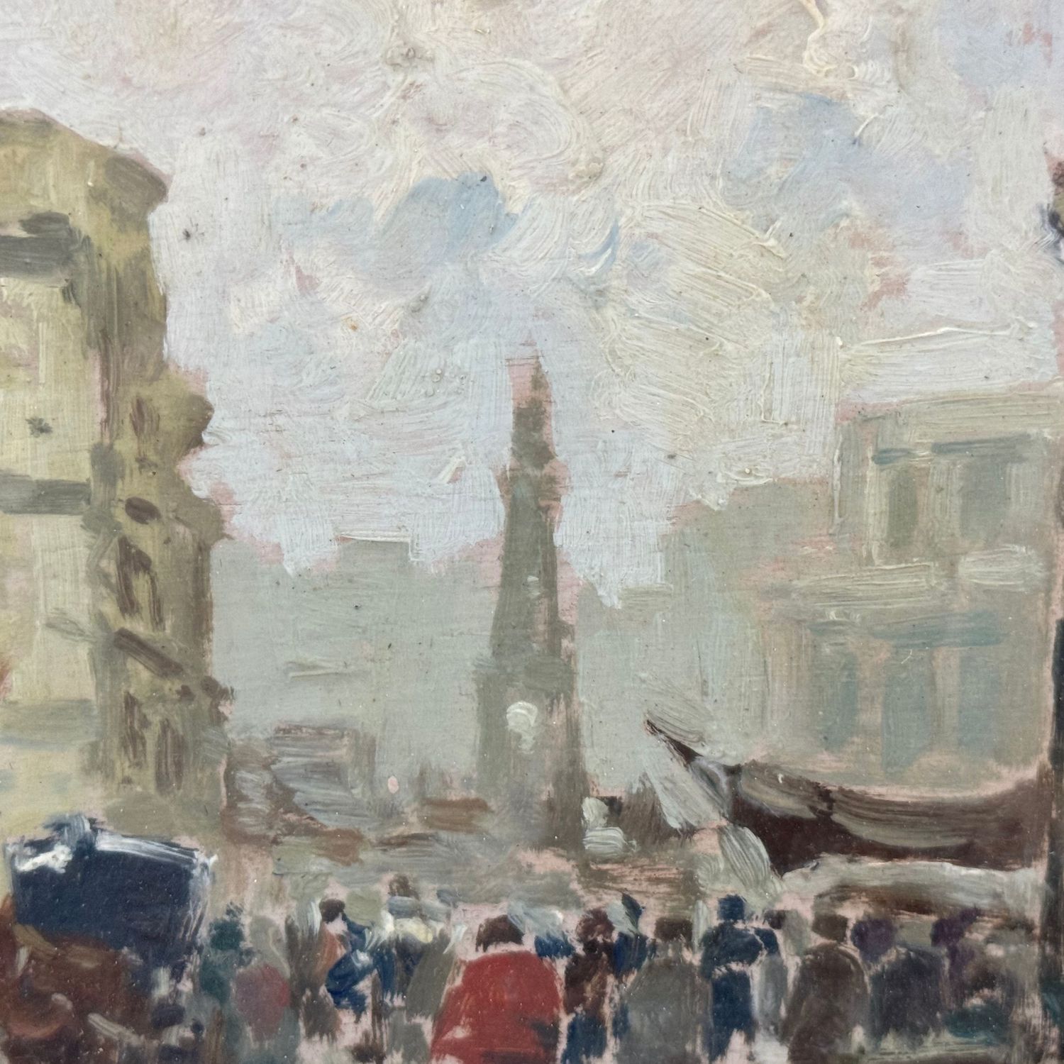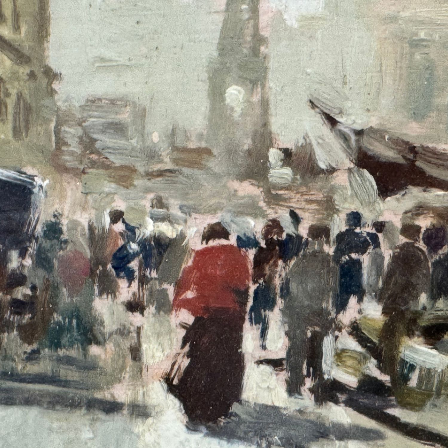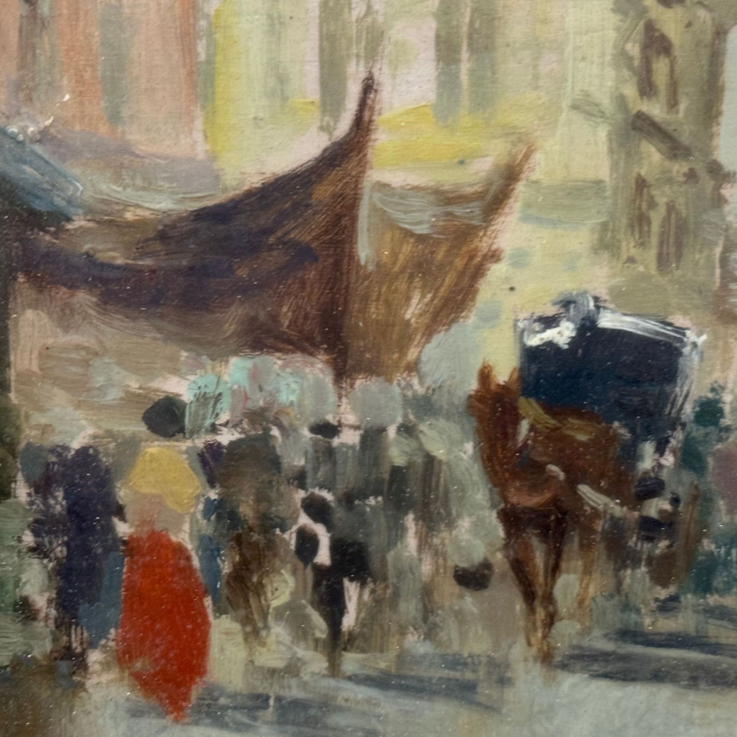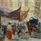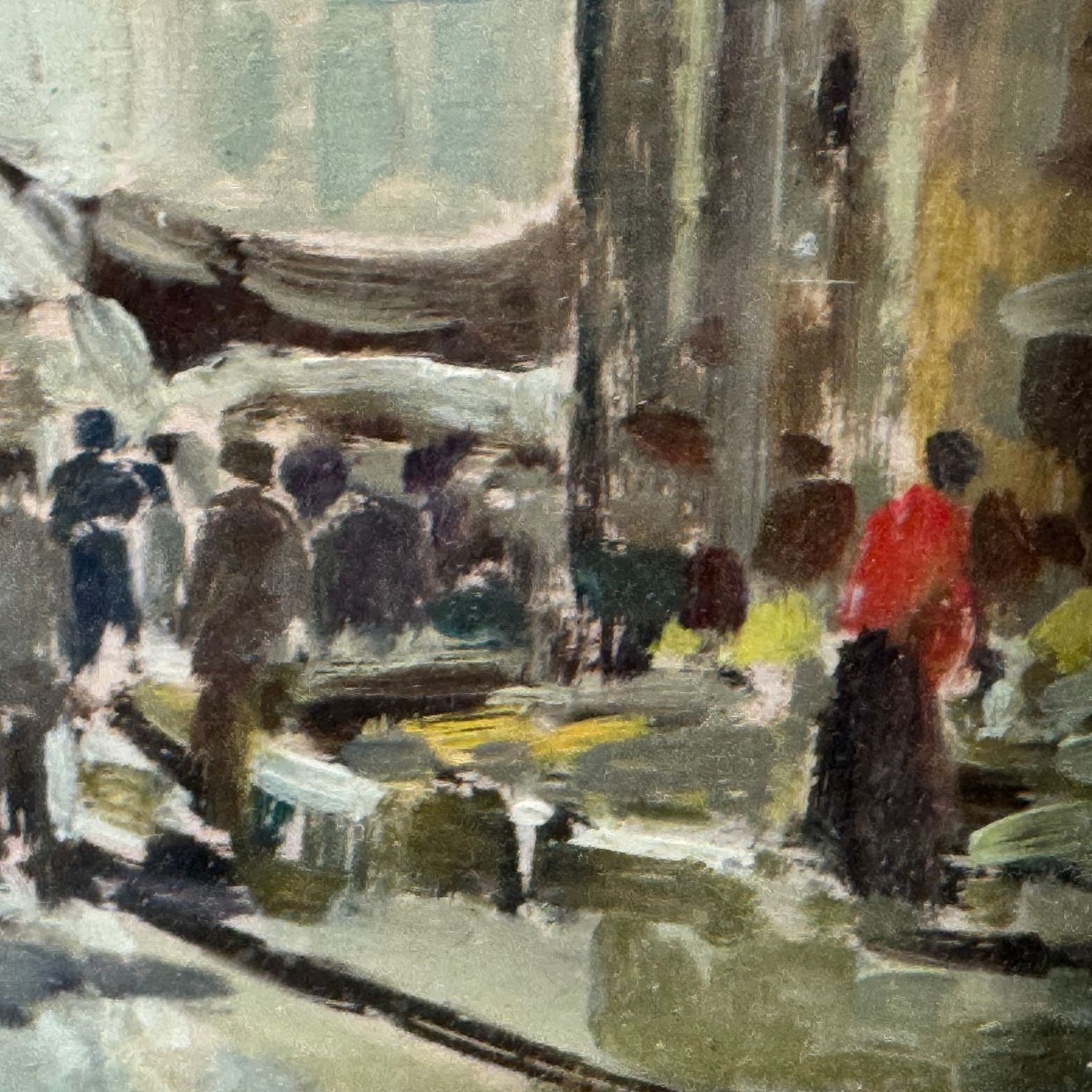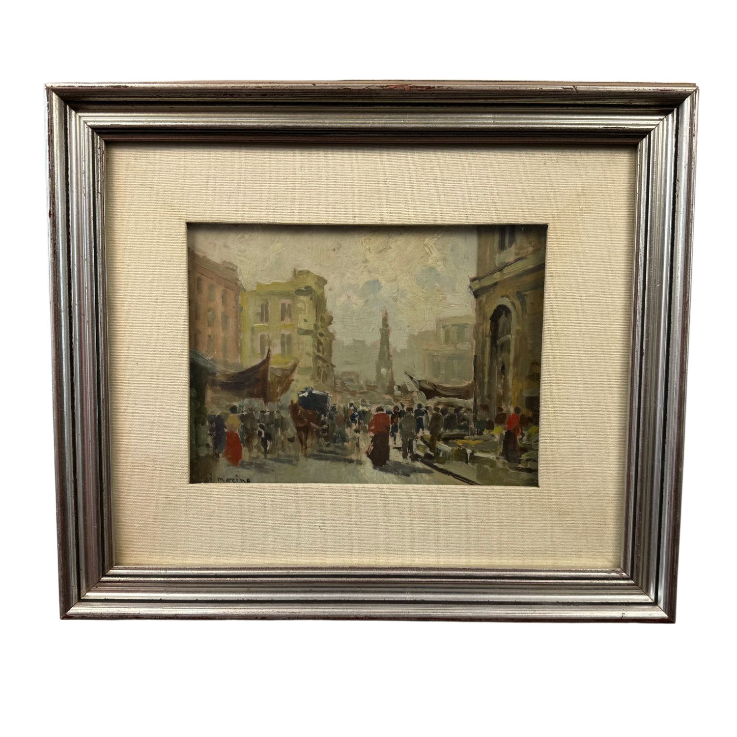 Dipinto olio su tavola, periodo XX secolo scuola Italiana, raffigurante Scena di mercatino a Napoli.