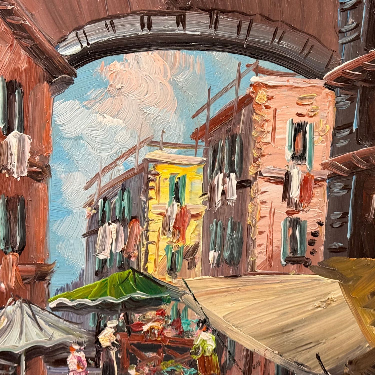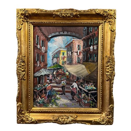 Dipinto olio su pannello, periodo XX secolo scuola Italiana, raffigurante Strada napoletana.