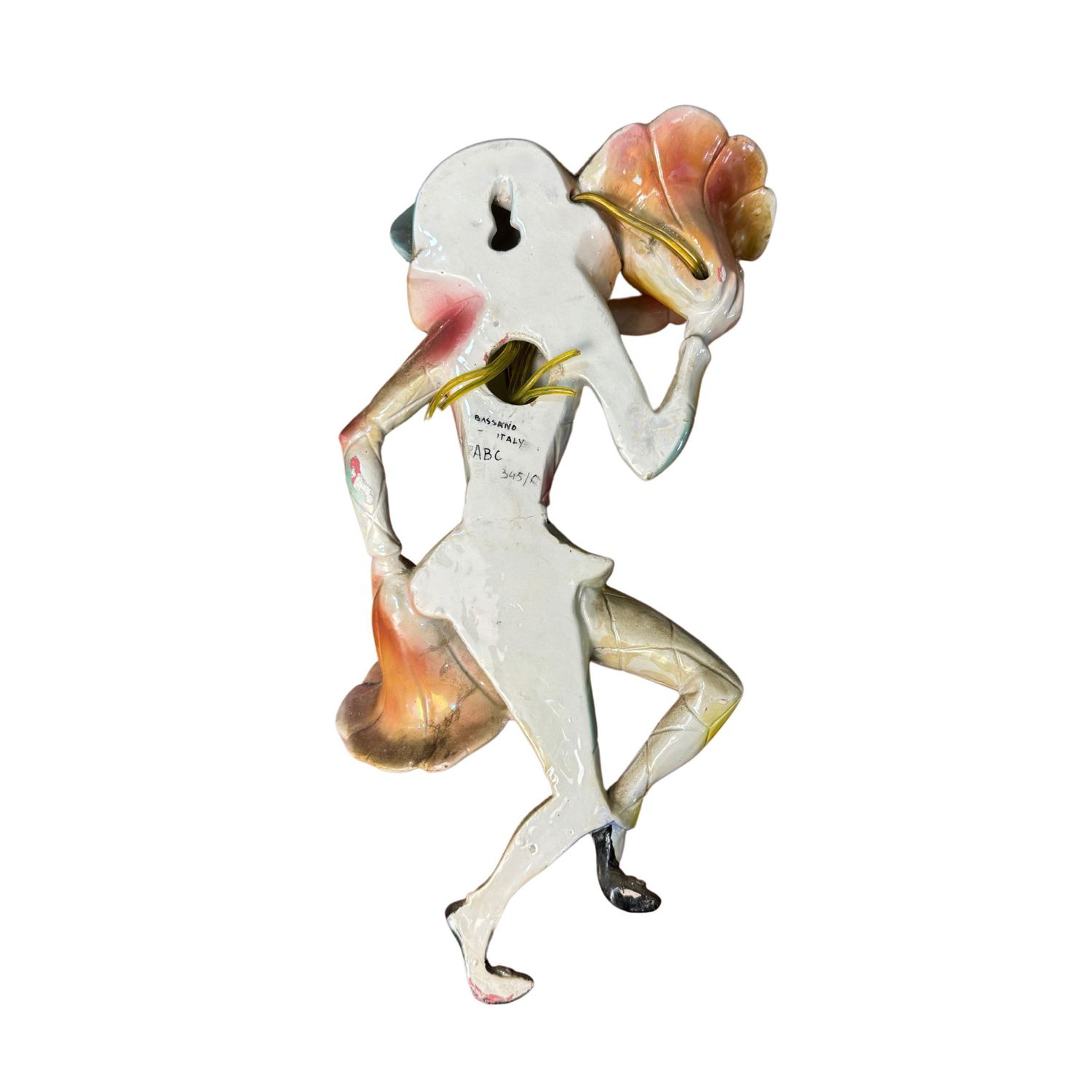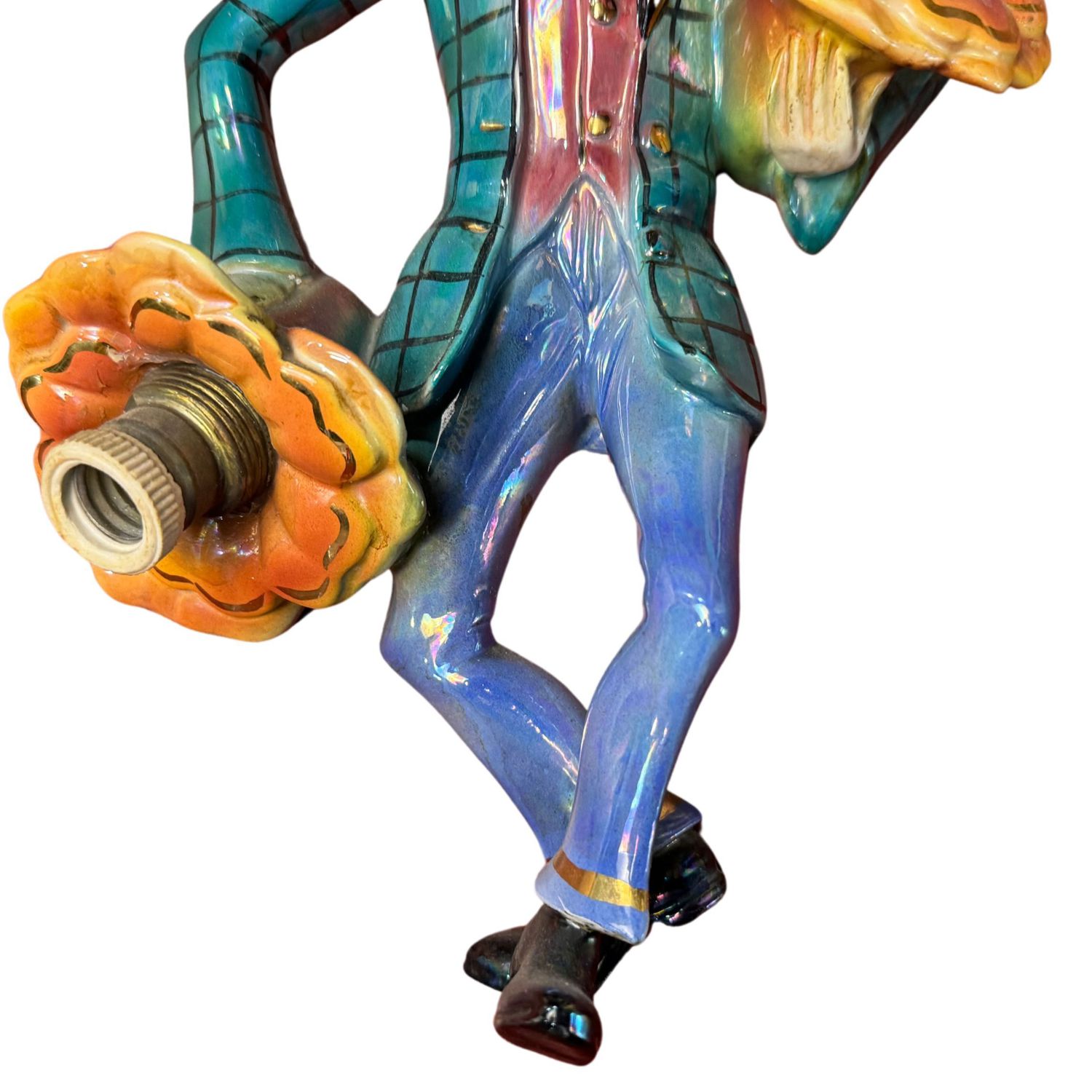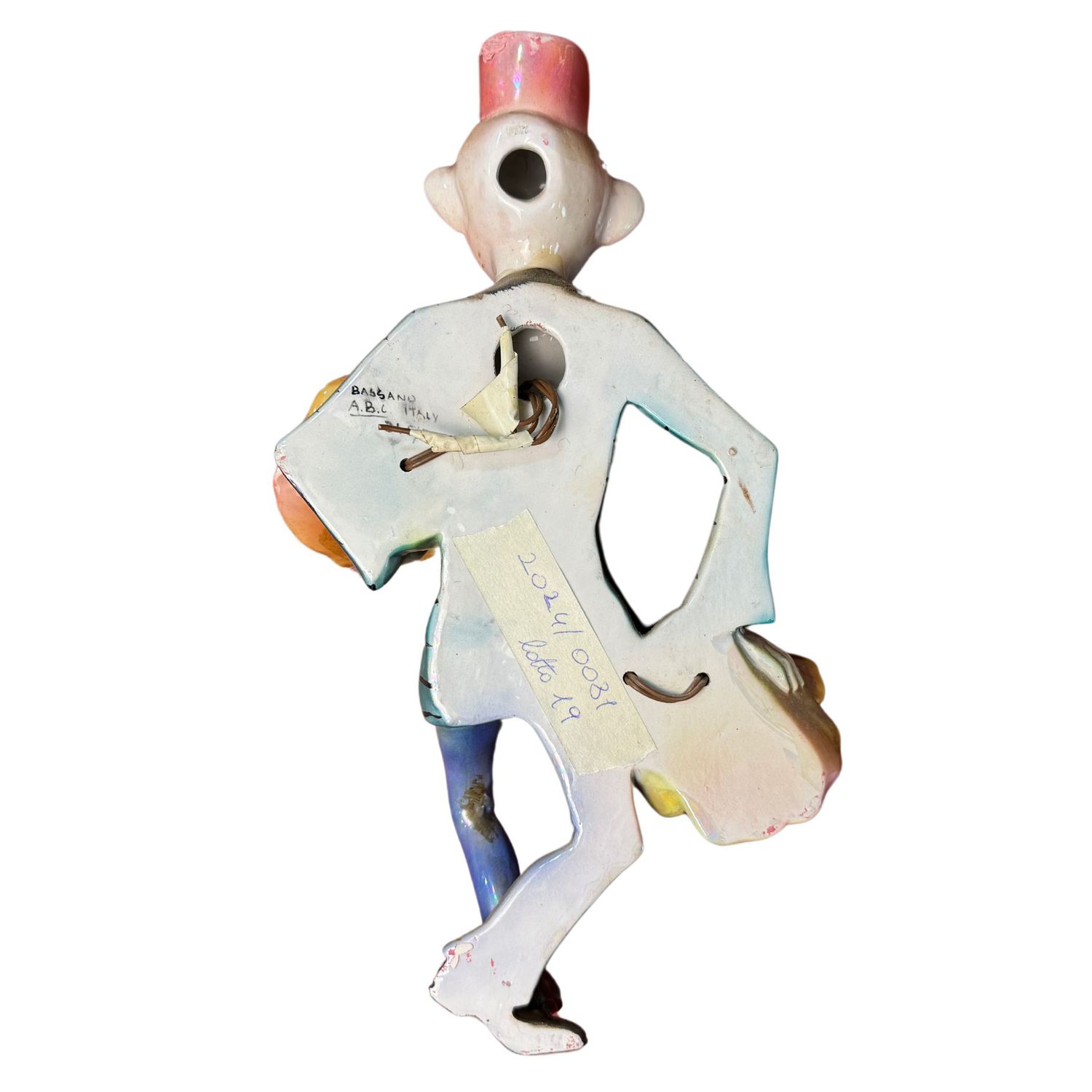 Coppia di applique in ceramica di Bassano, periodo metà del XX secolo, raffiguranti personaggi carnevaleschi.