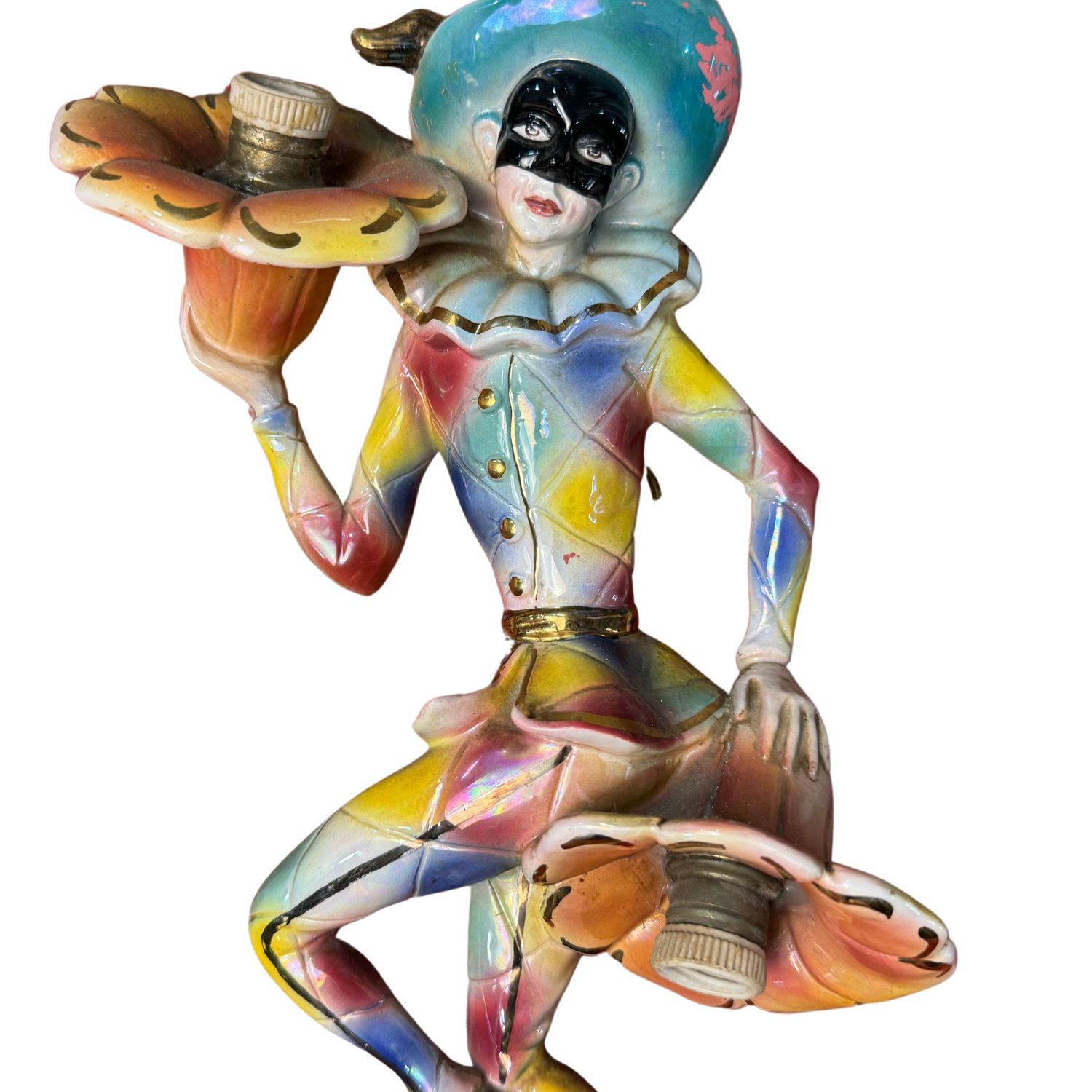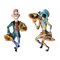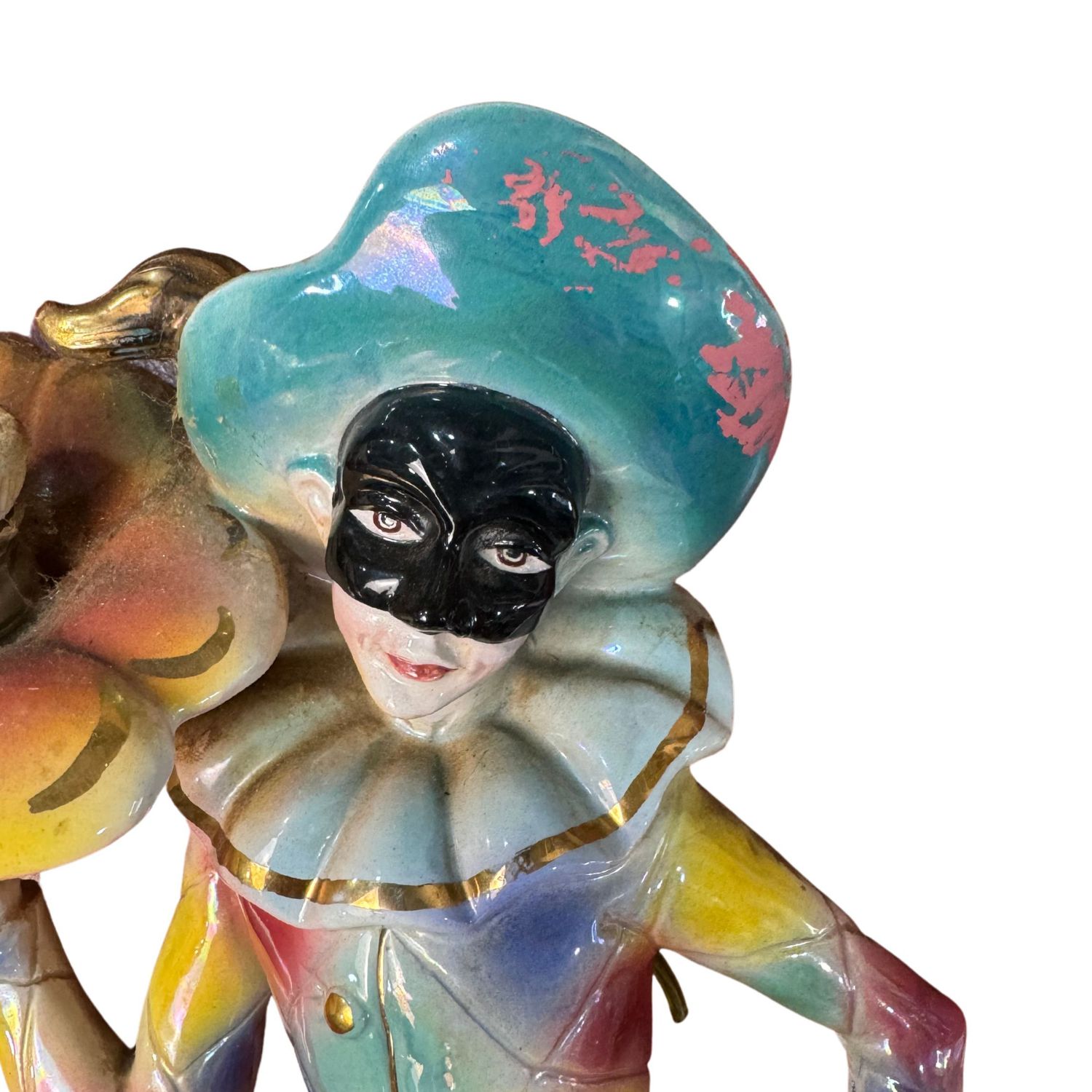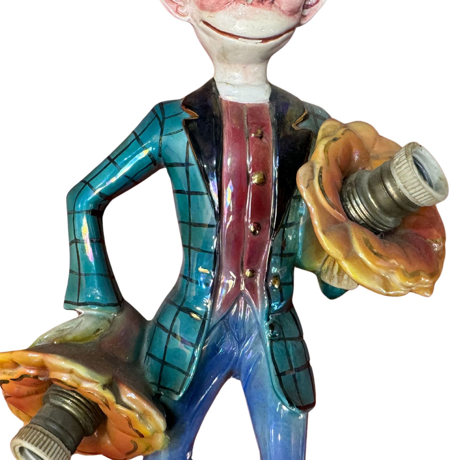 Coppia di applique in ceramica di Bassano, periodo metà del XX secolo, raffiguranti personaggi carnevaleschi.
