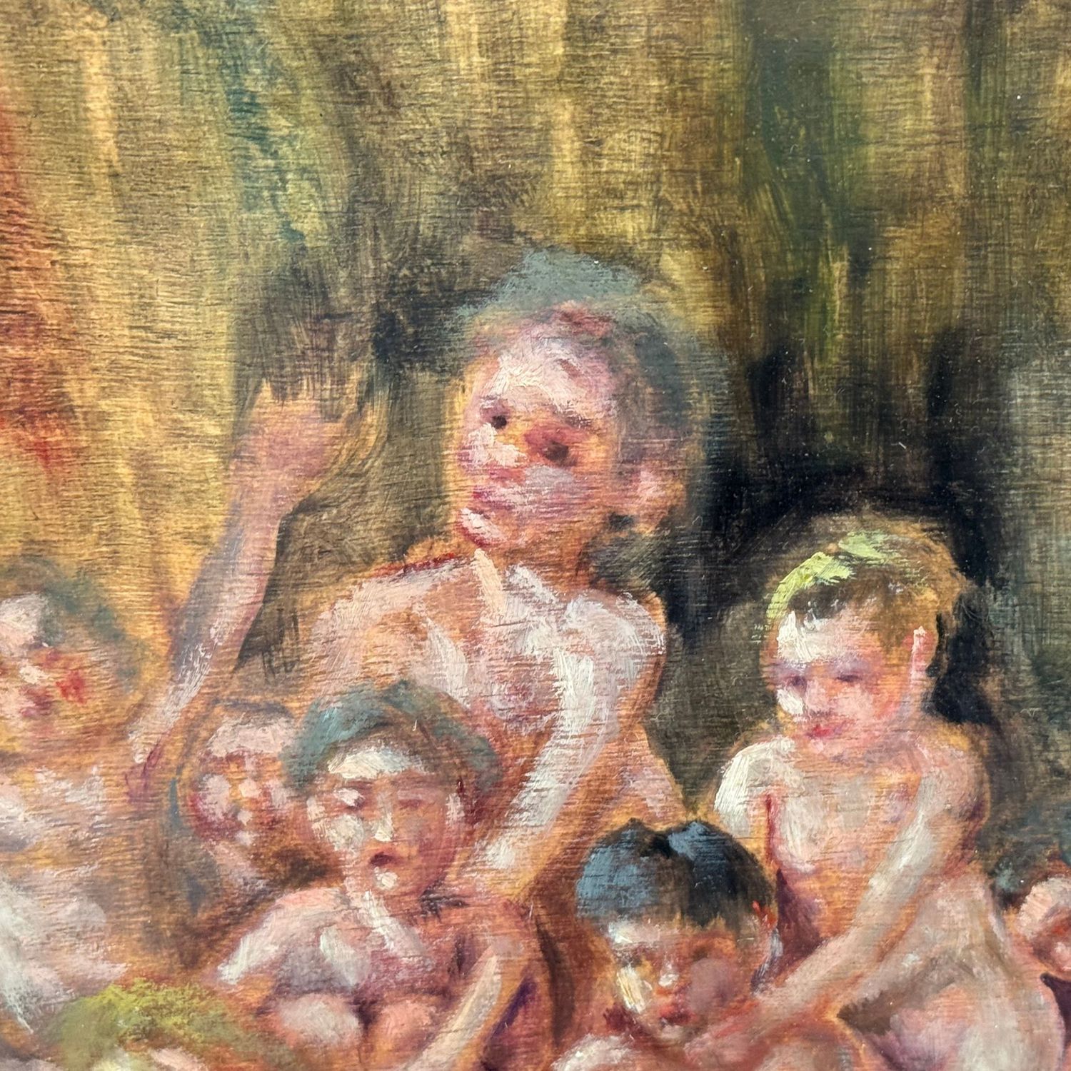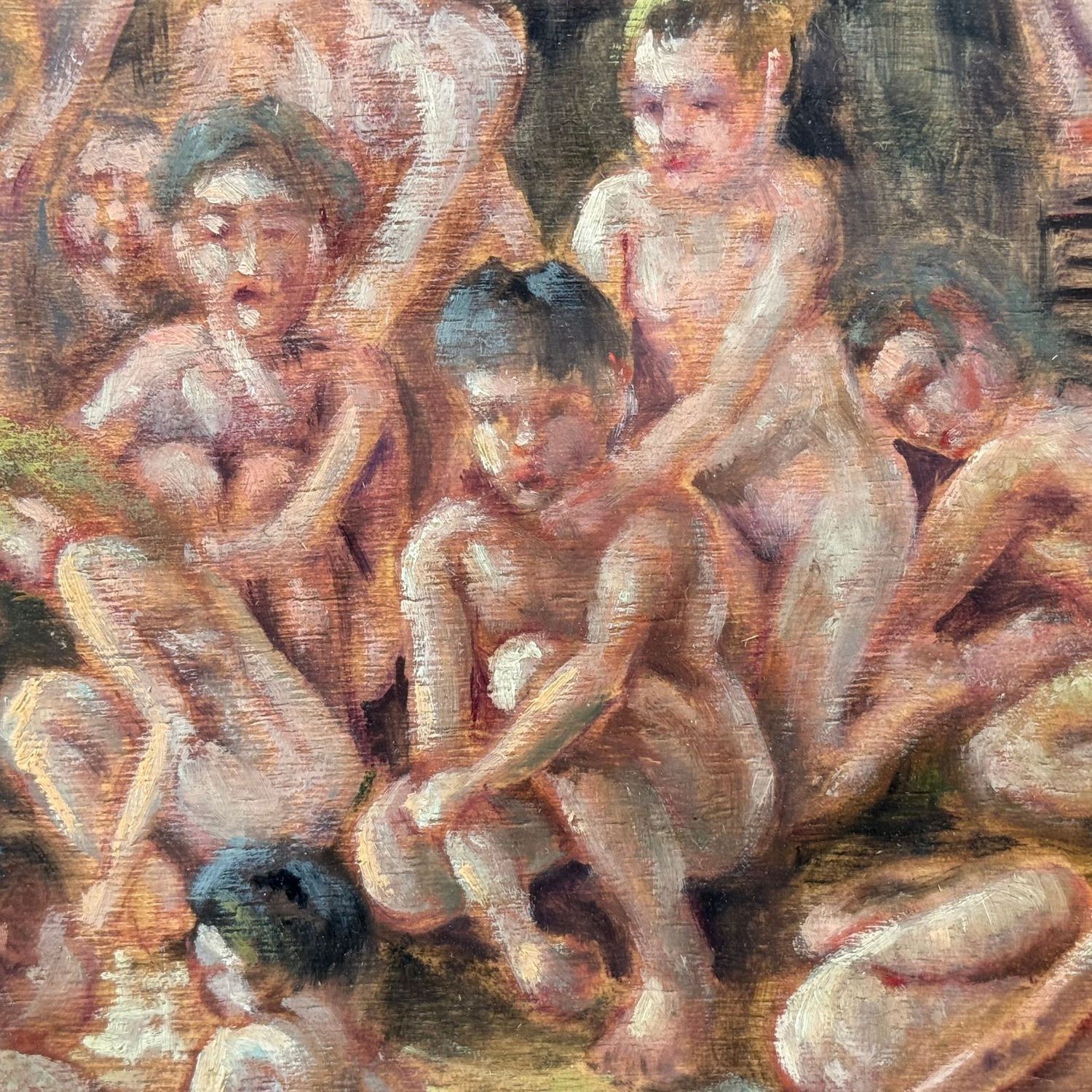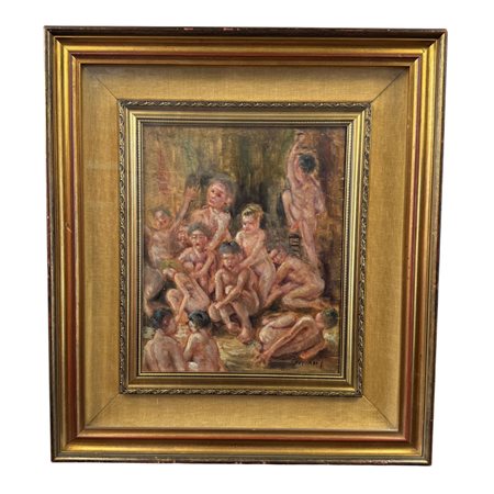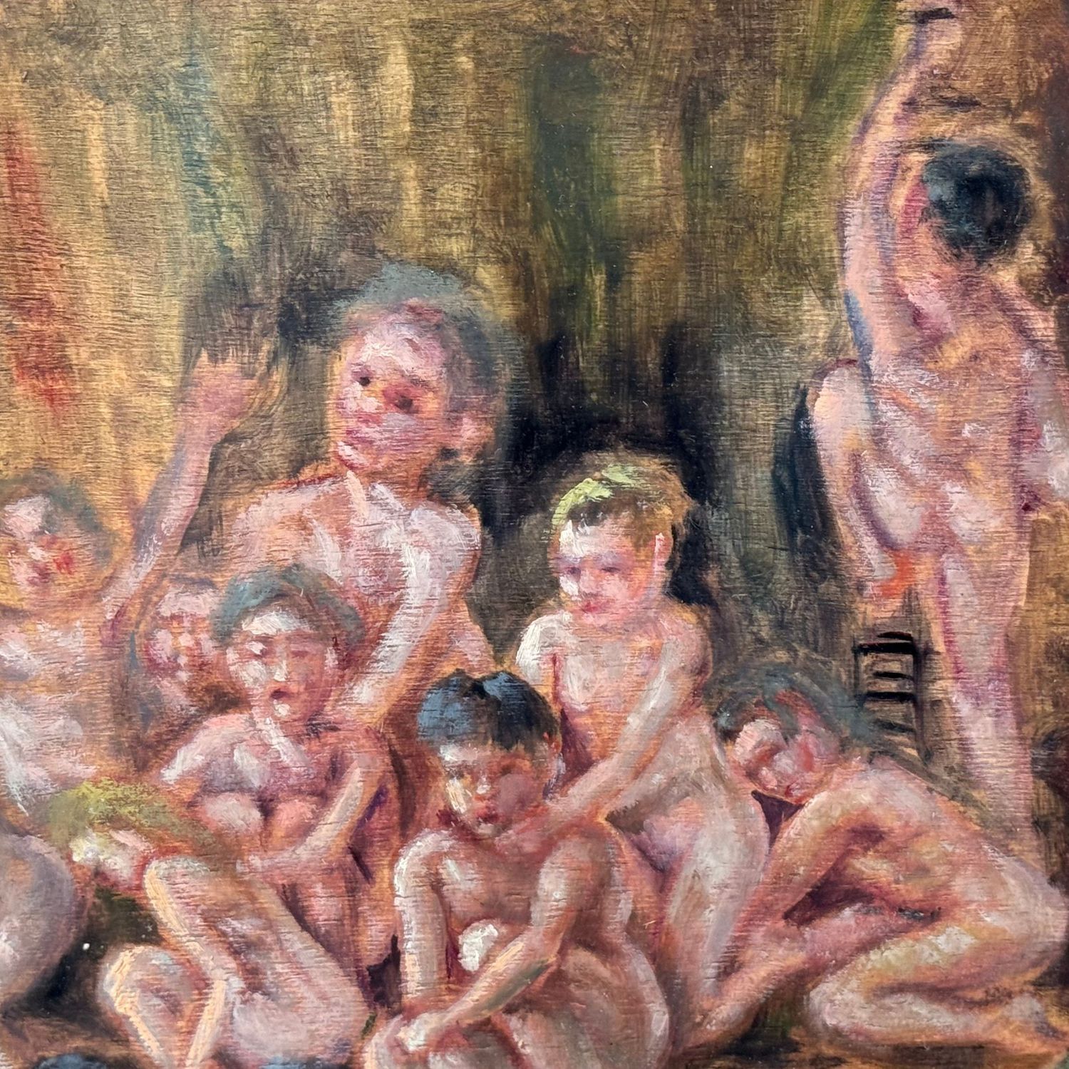 Dipinto olio su tavola, periodo XX secolo scuola Italiana, raffigurante Nudo di bambini.