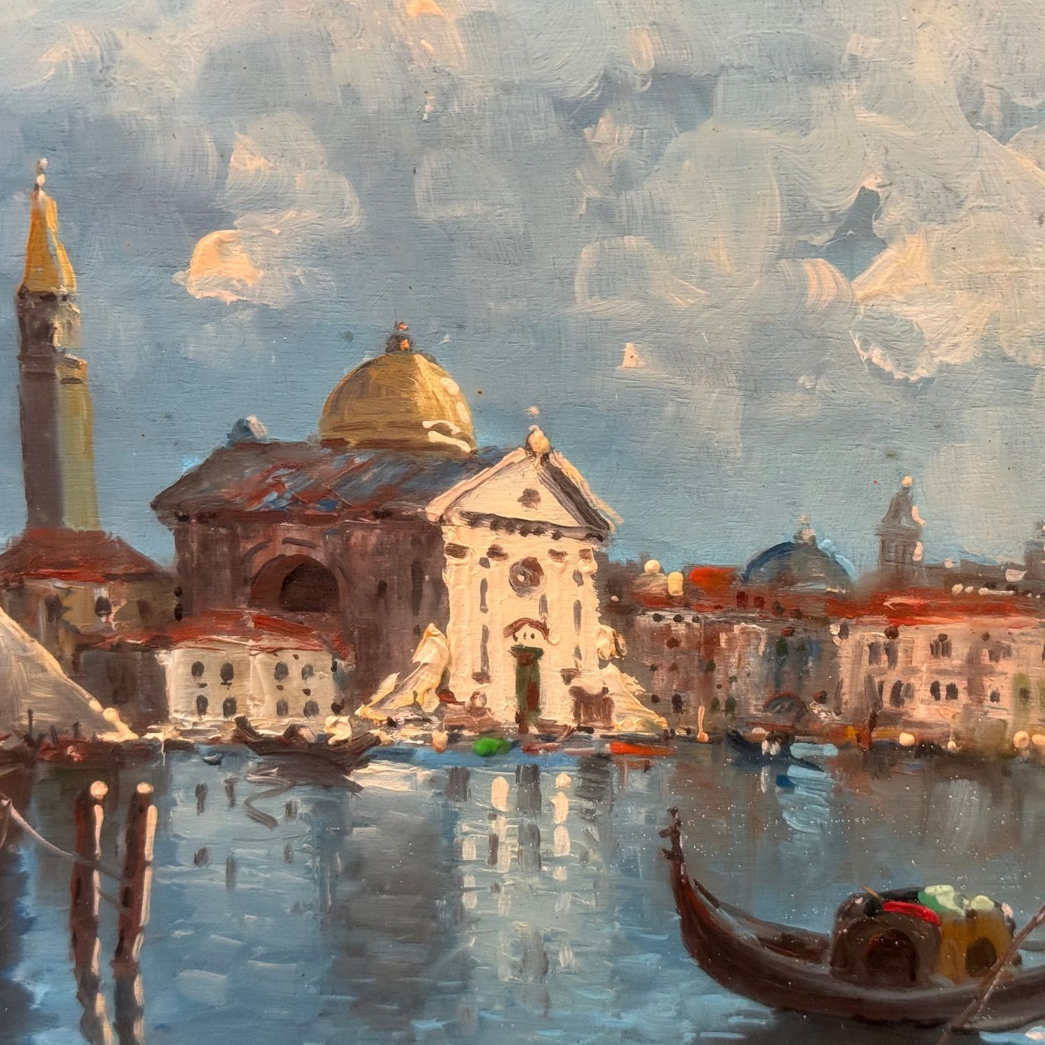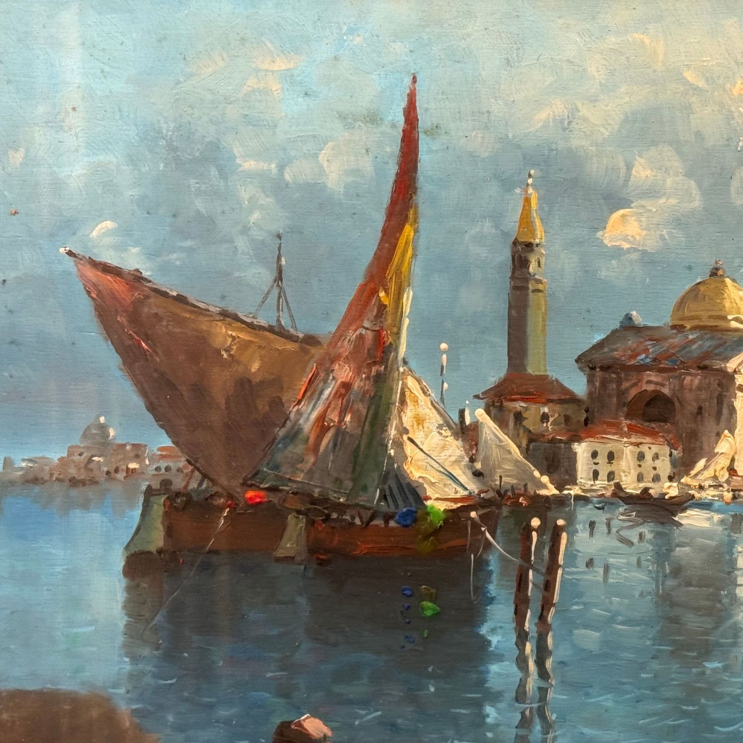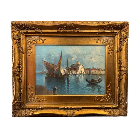 Dipinto olio su tavola, periodo XX secolo scuola Italiana, raffigurante La laguna a Venezia.