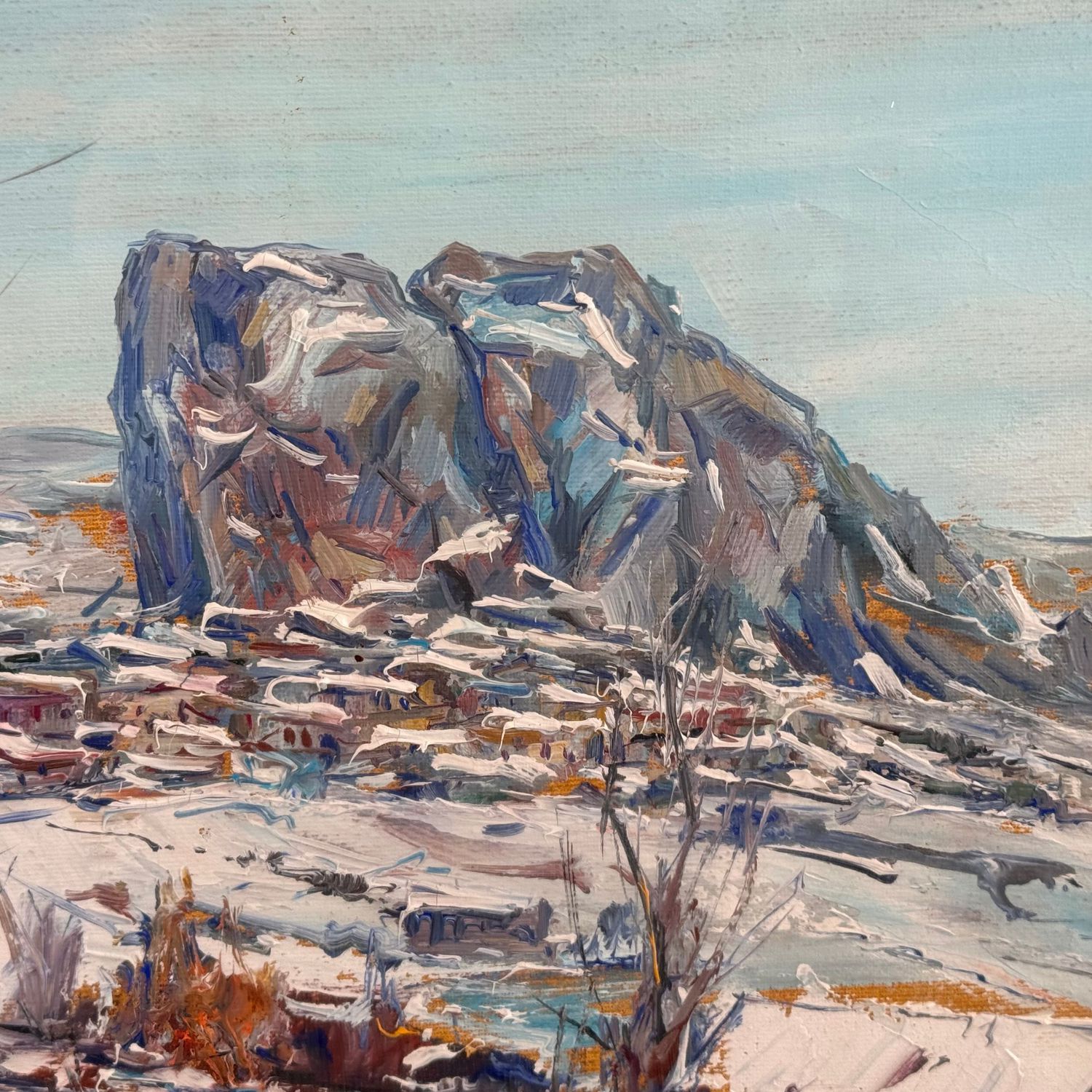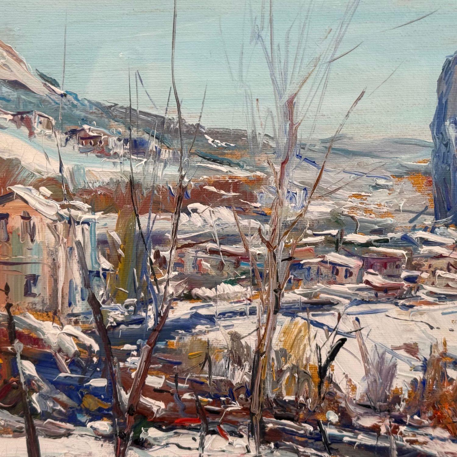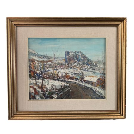Dipinto olio su tela, periodo XX secolo scuola Italiana, raffigurante Paesaggio innevato.