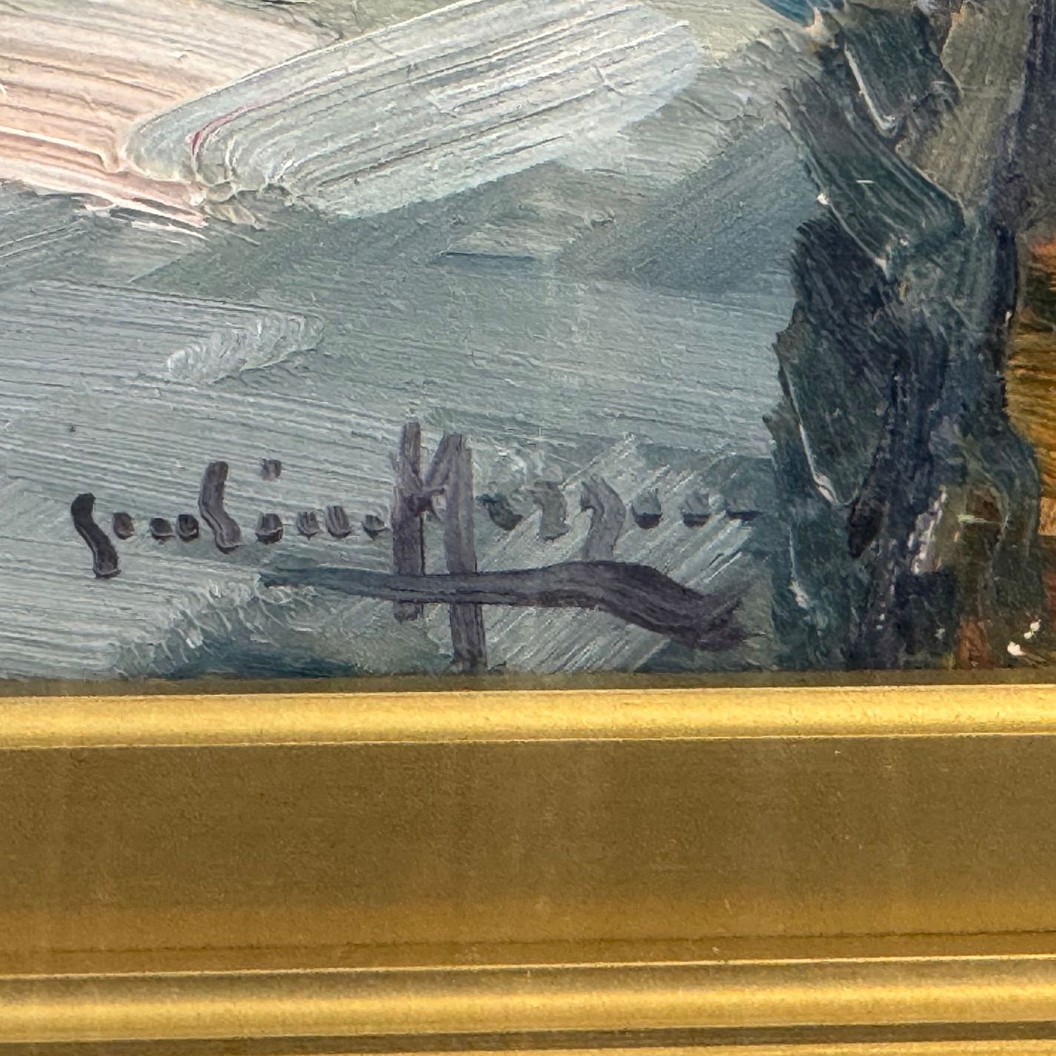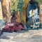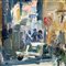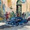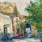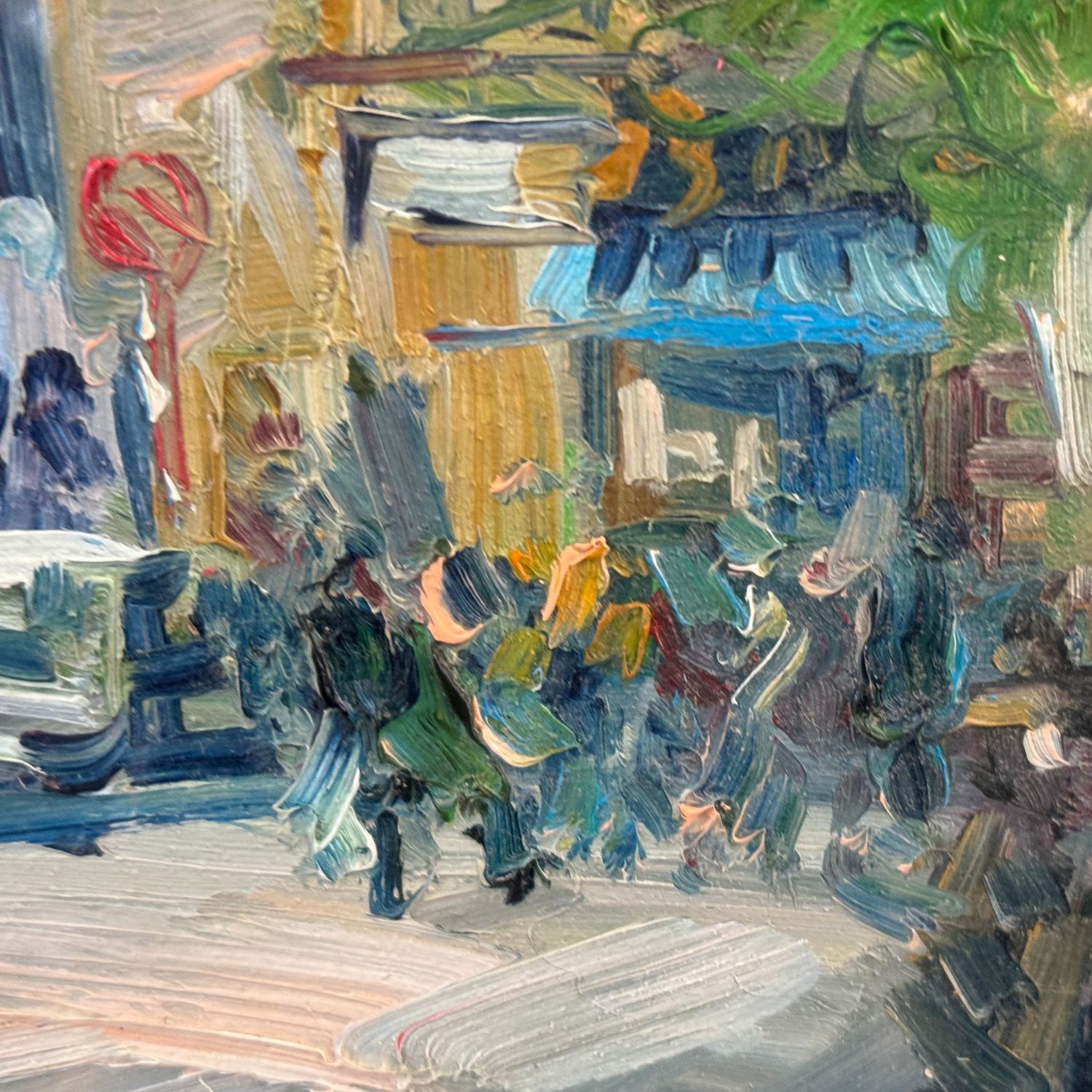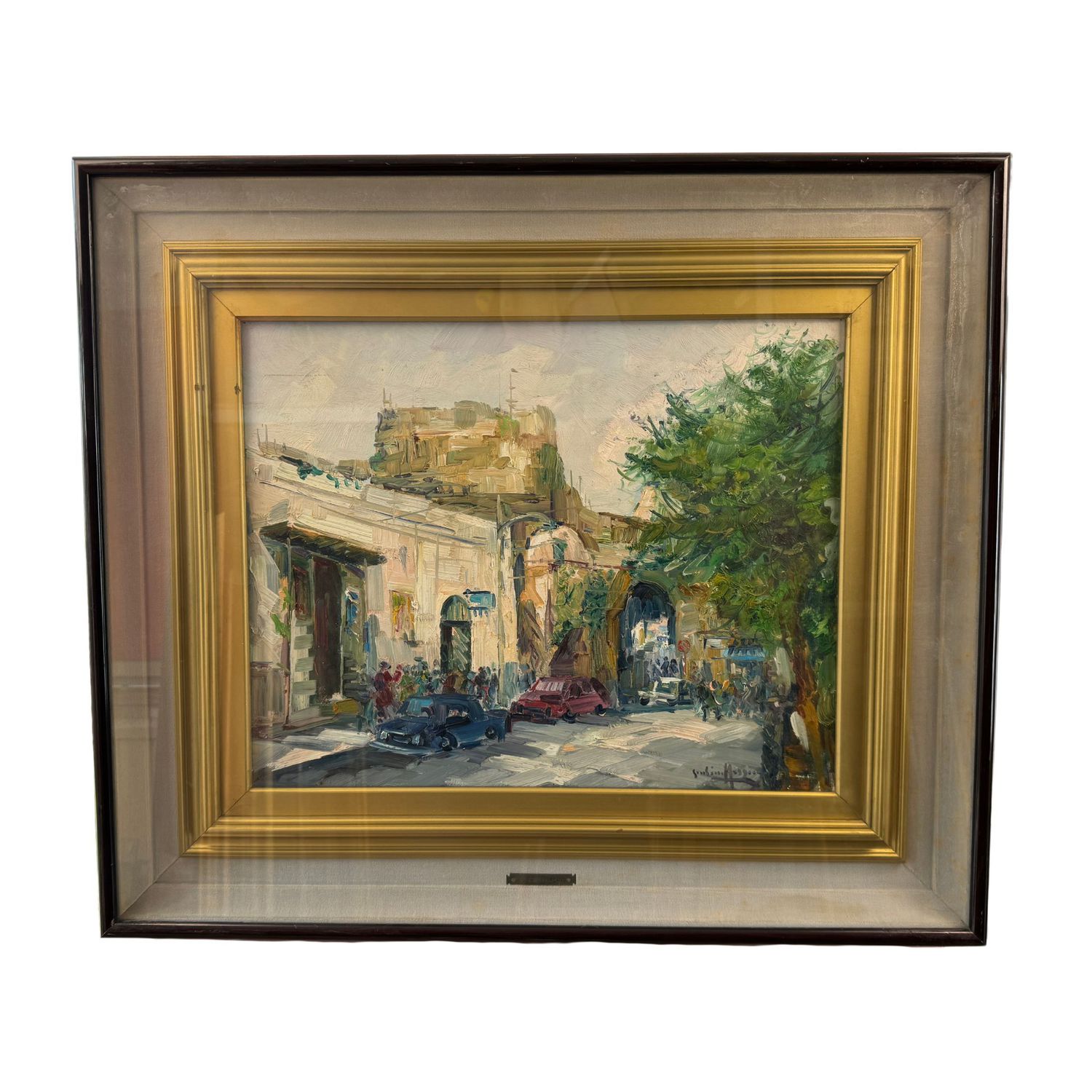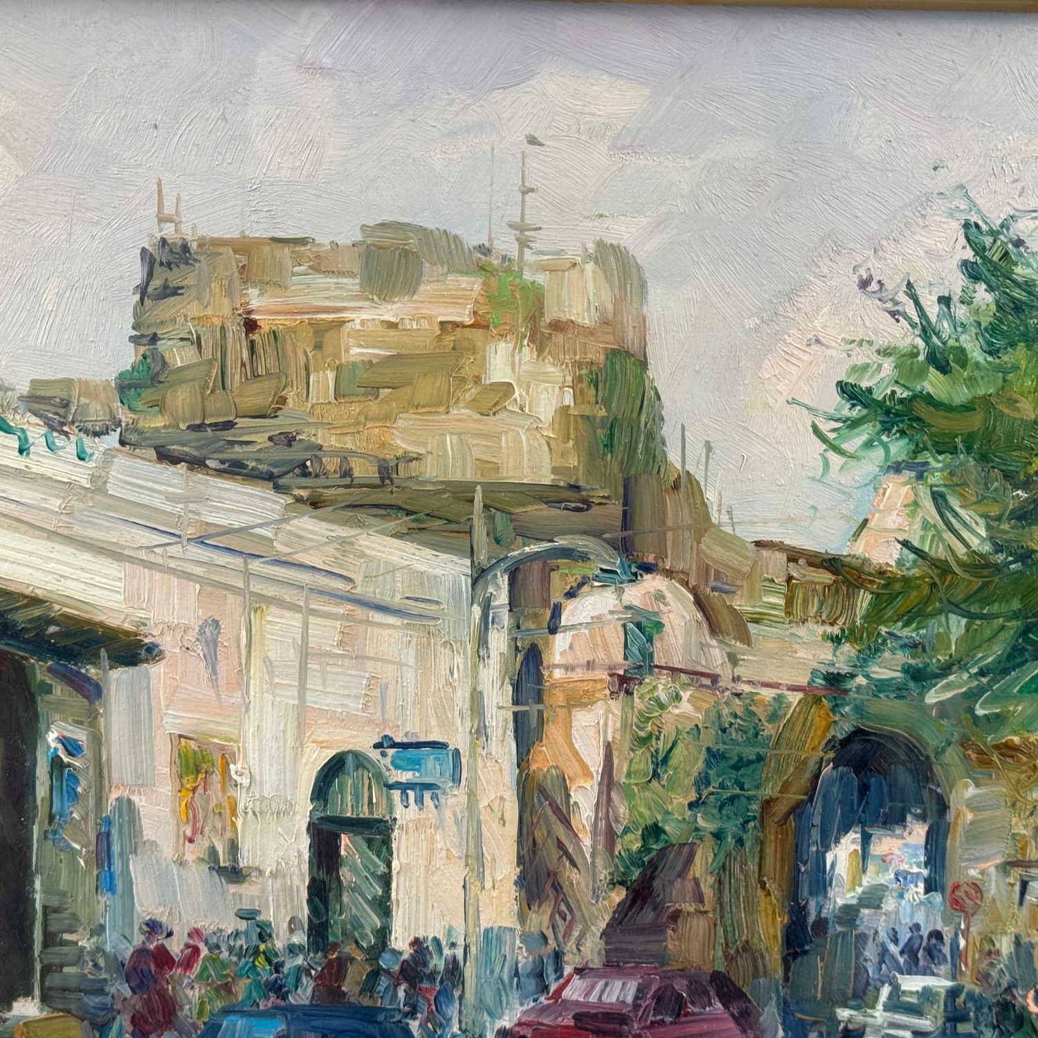 Dipinto olio su tavola, periodo XX secolo scuola Italiana, raffigurante Strada con personaggi.