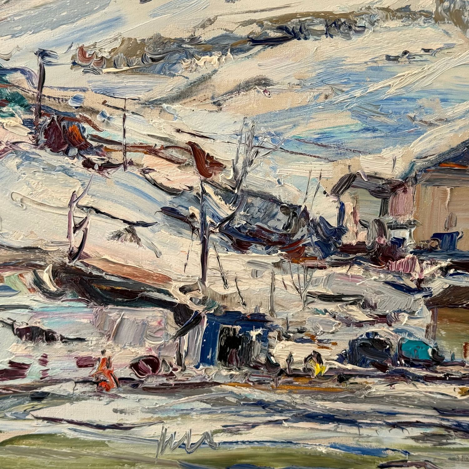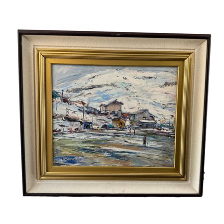 Dipinto olio su tela, periodo XX secolo scuola Italiana, raffigurante Paesaggio di montagna innevata.