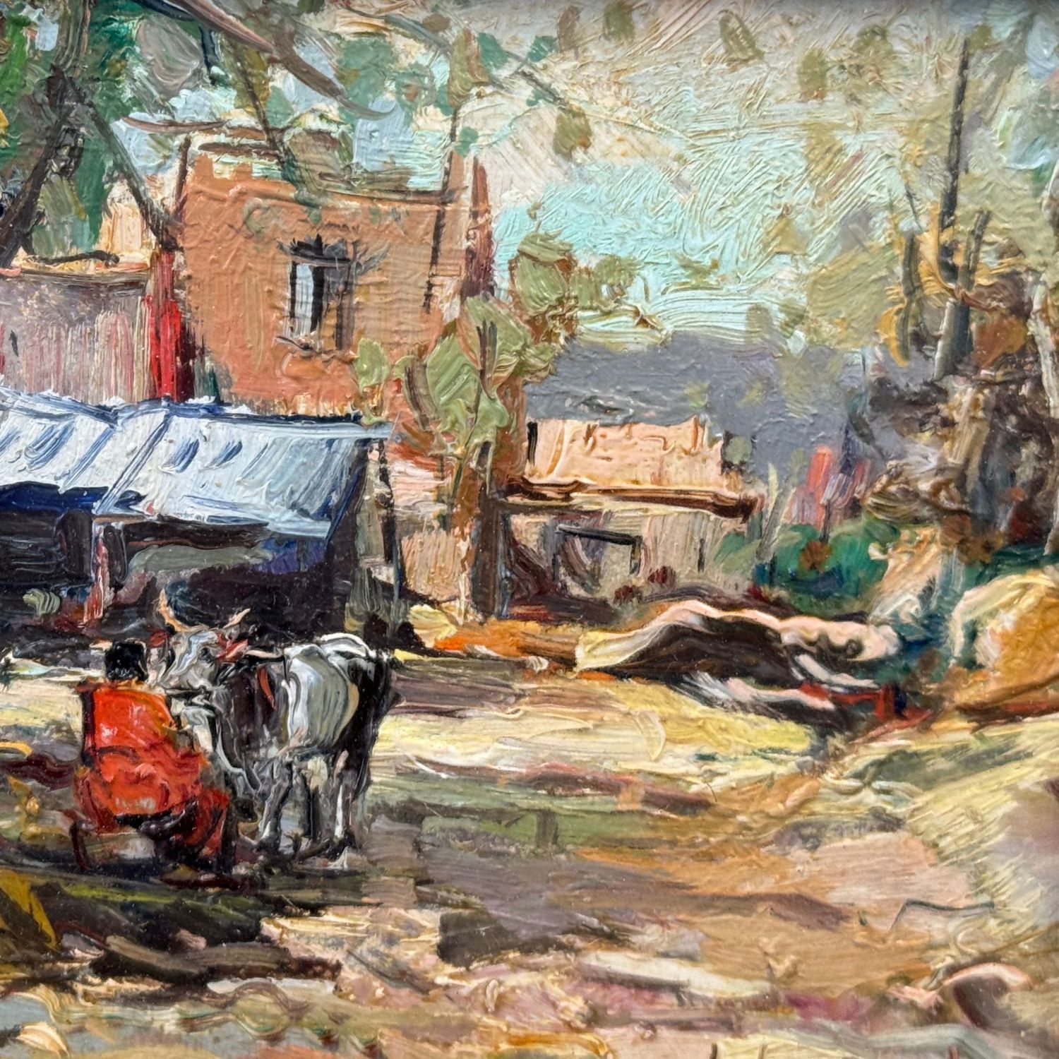 Dipinto olio su tavola, periodo XX secolo scuola Italiana, raffigurante Fattoria.