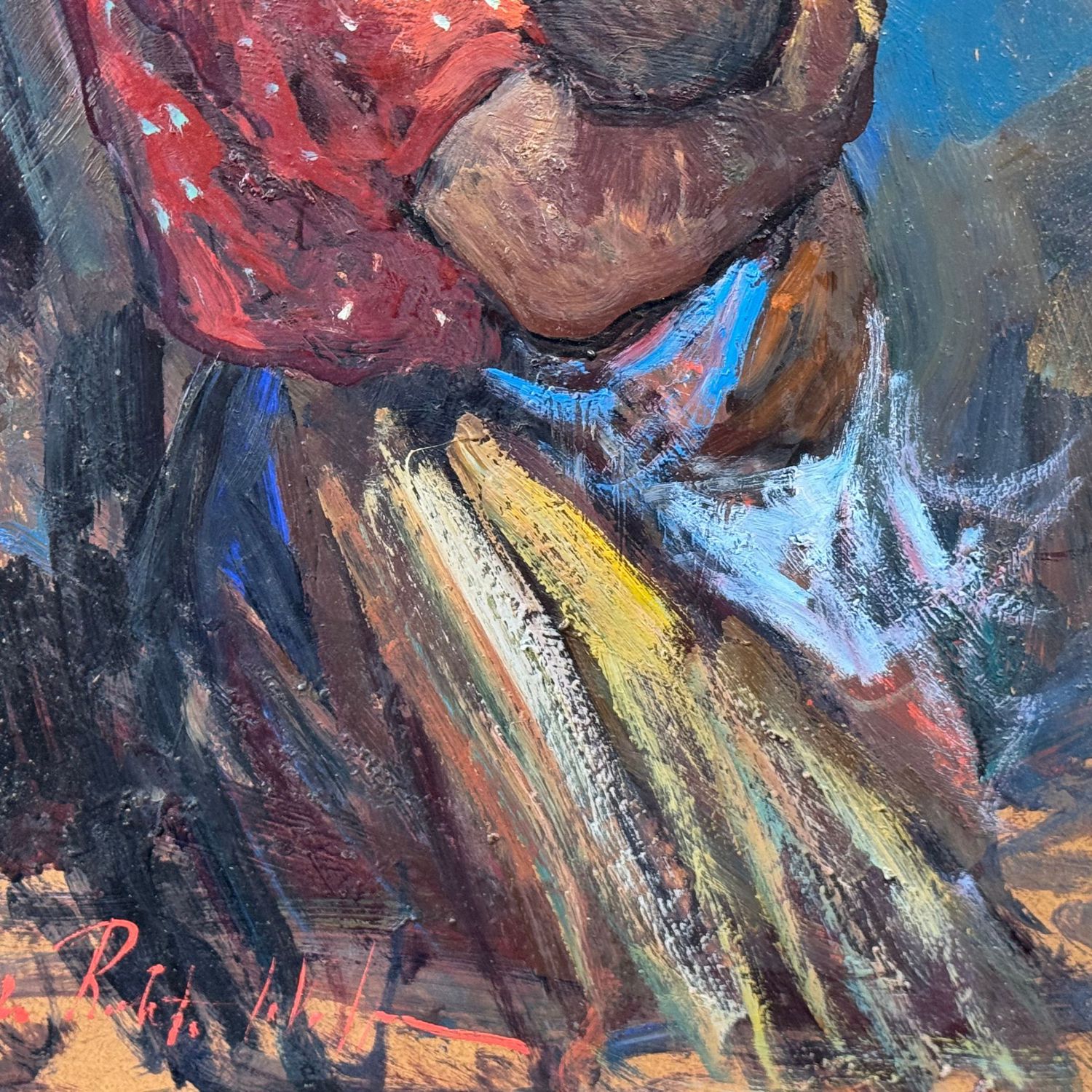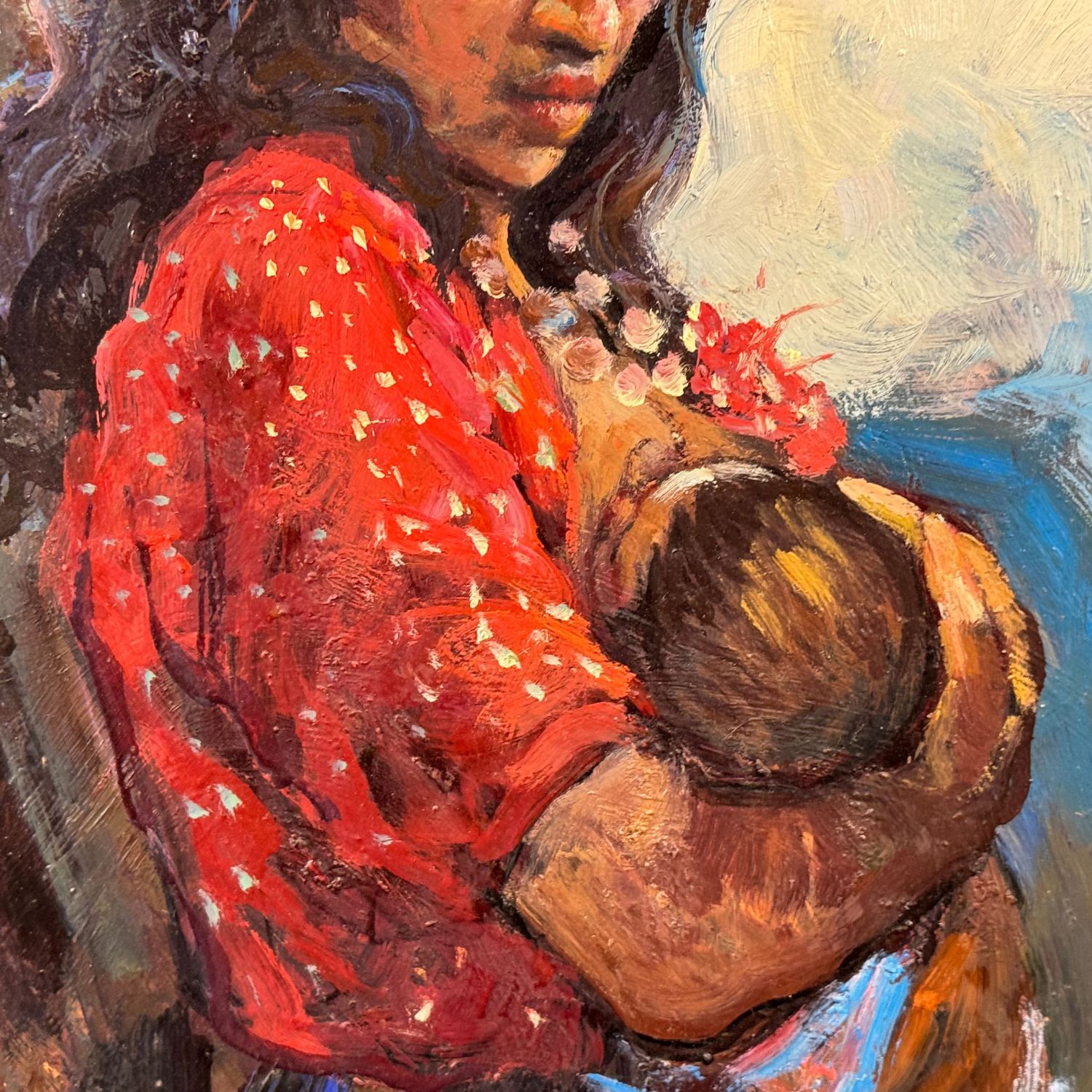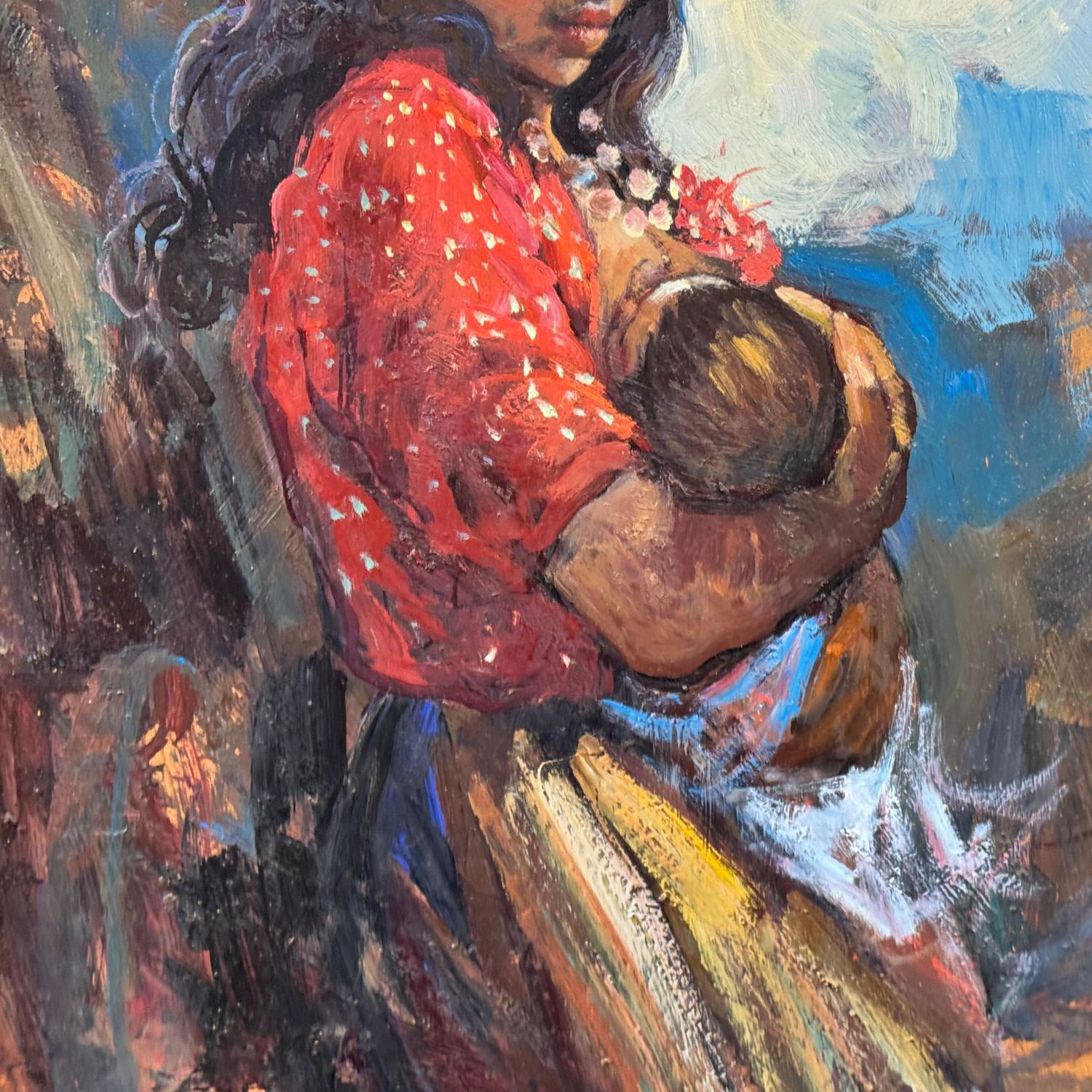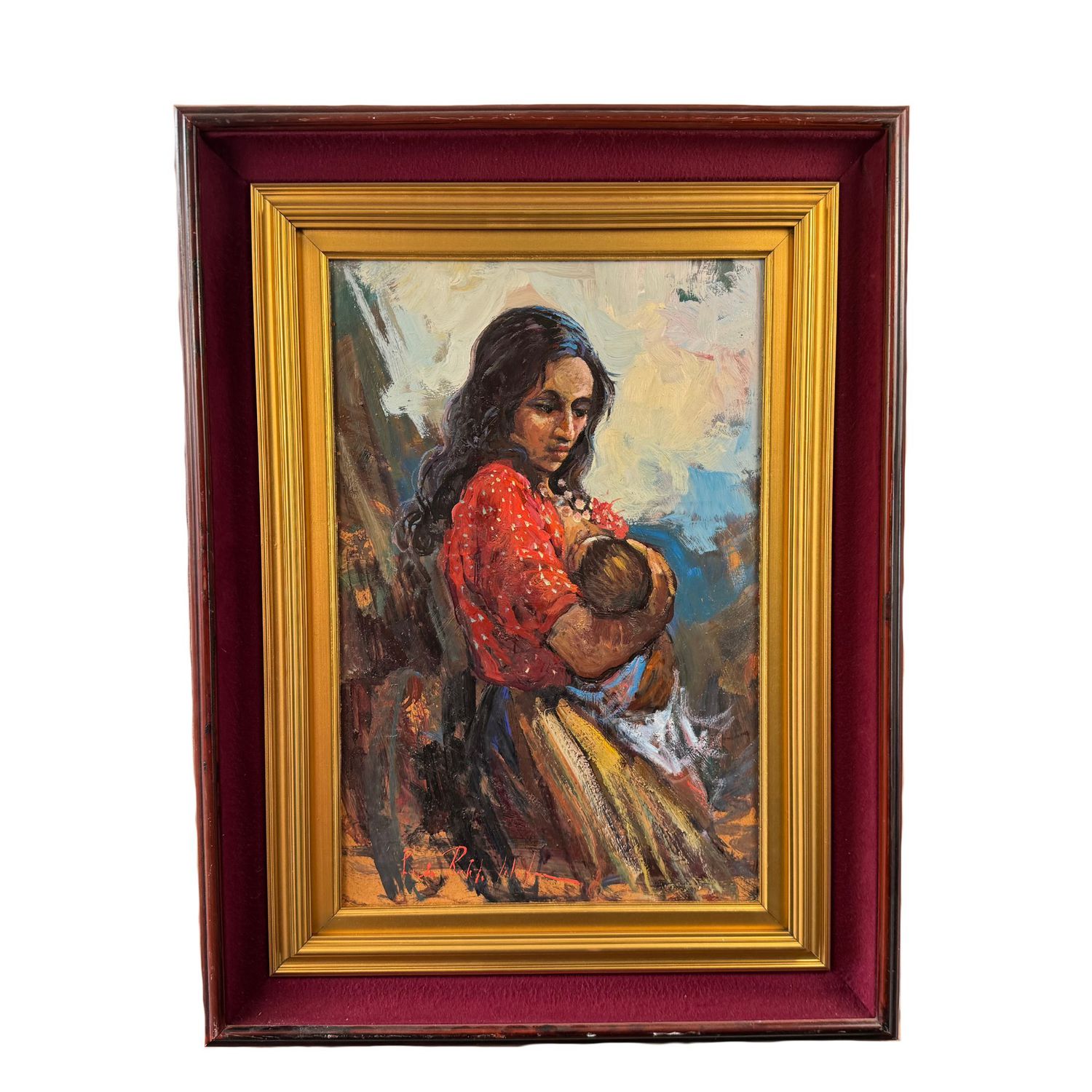 Dipinto olio su pannello, periodo XX secolo scuola Italiana, raffigurante "La Maternità".