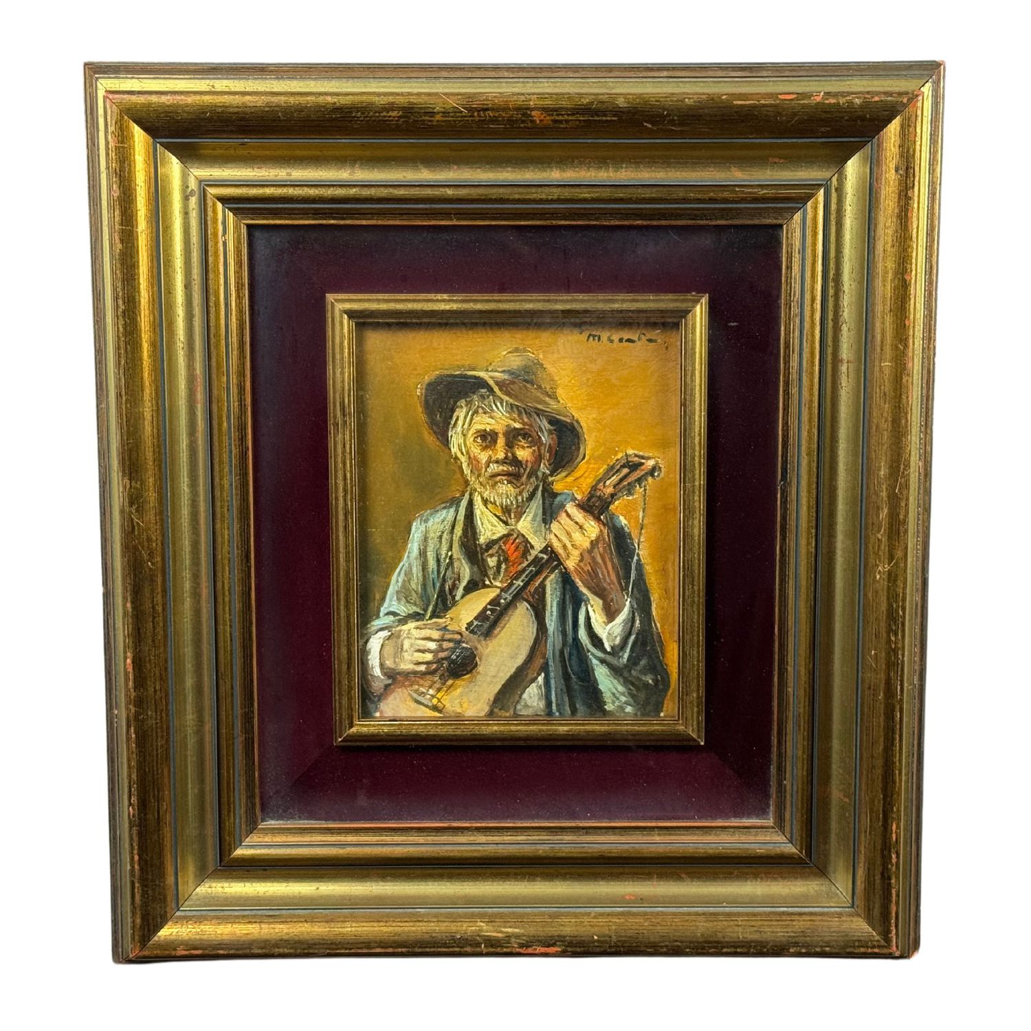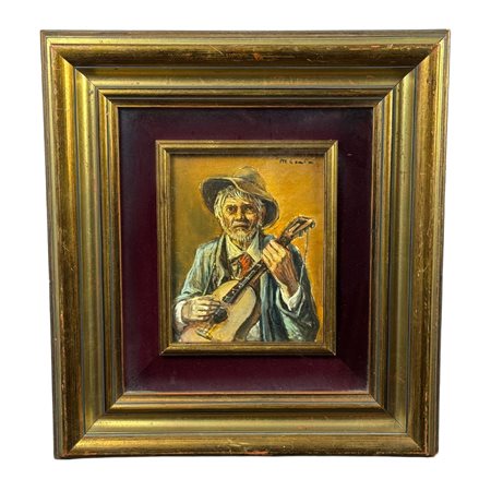 Dipinto olio su pannello, periodo XX secolo scuola Italiana, raffigurante Ritratto di musicista.