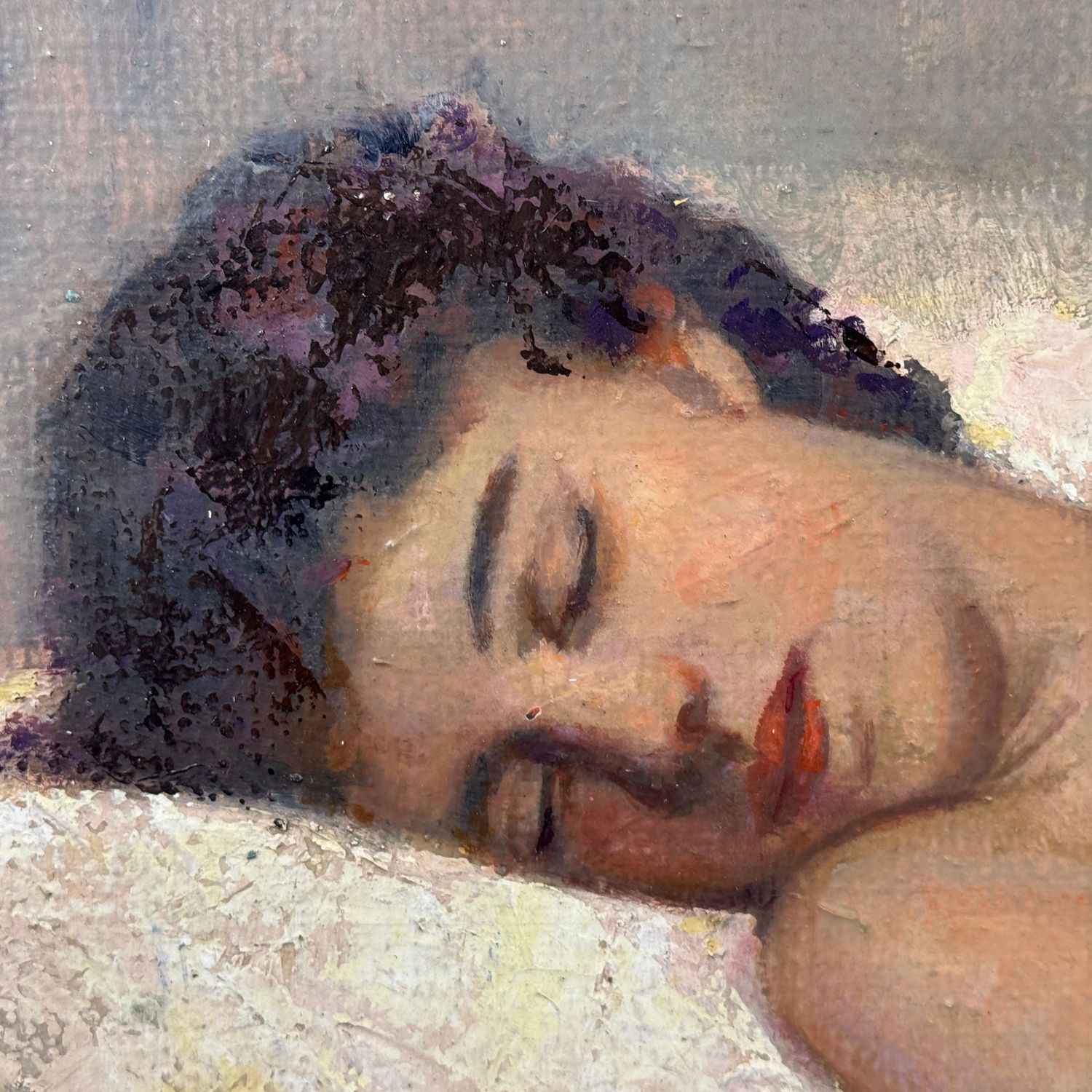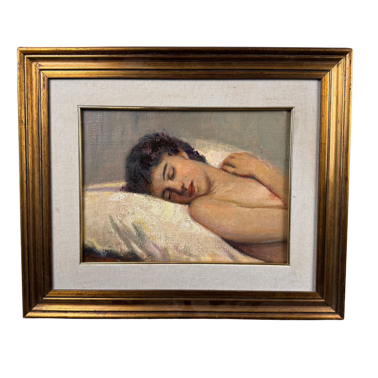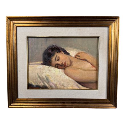 Dipinto olio su tela, periodo XX secolo scuola Italiana, raffigurante Ragazza dormiente.
