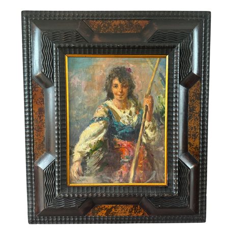 Dipinto olio su tavola, periodo XX secolo scuola Italiana, raffigurante Donna