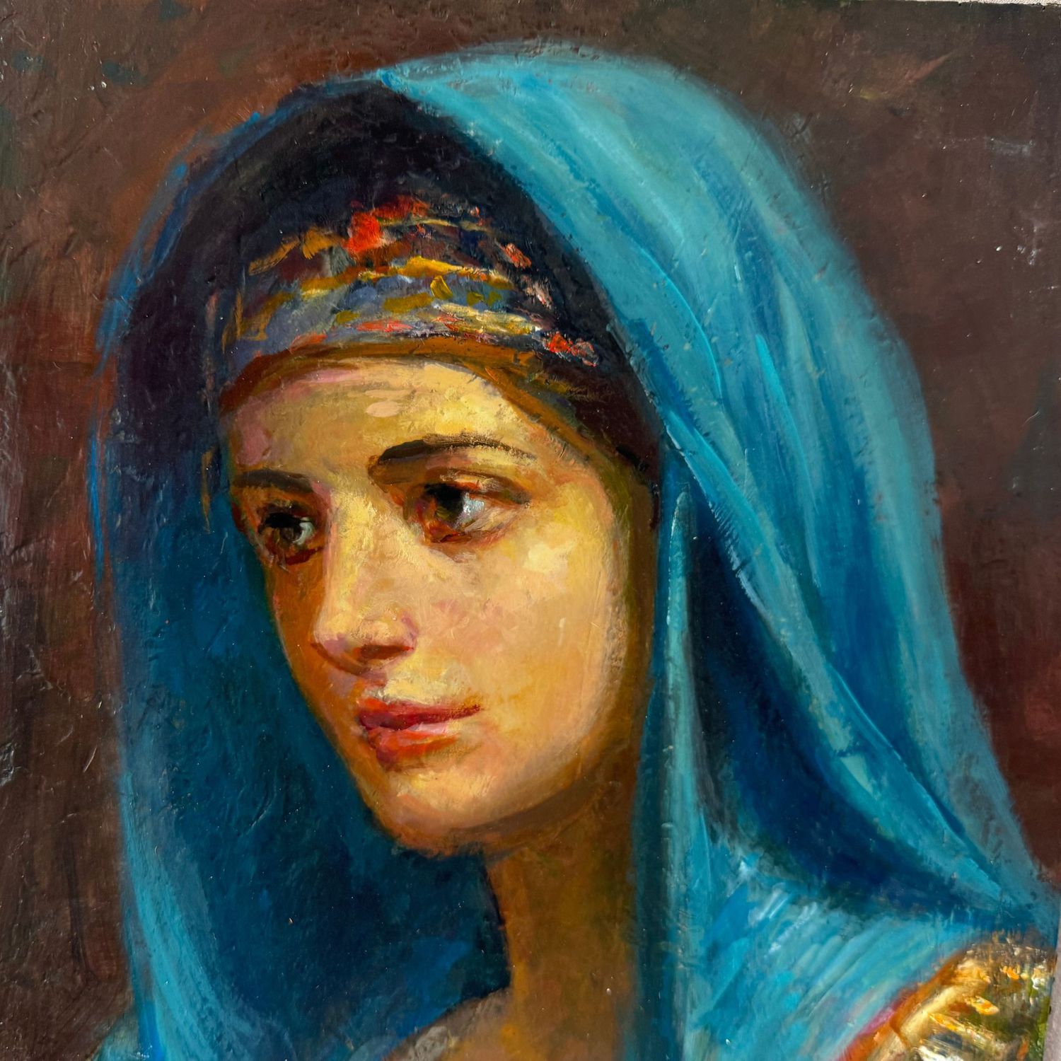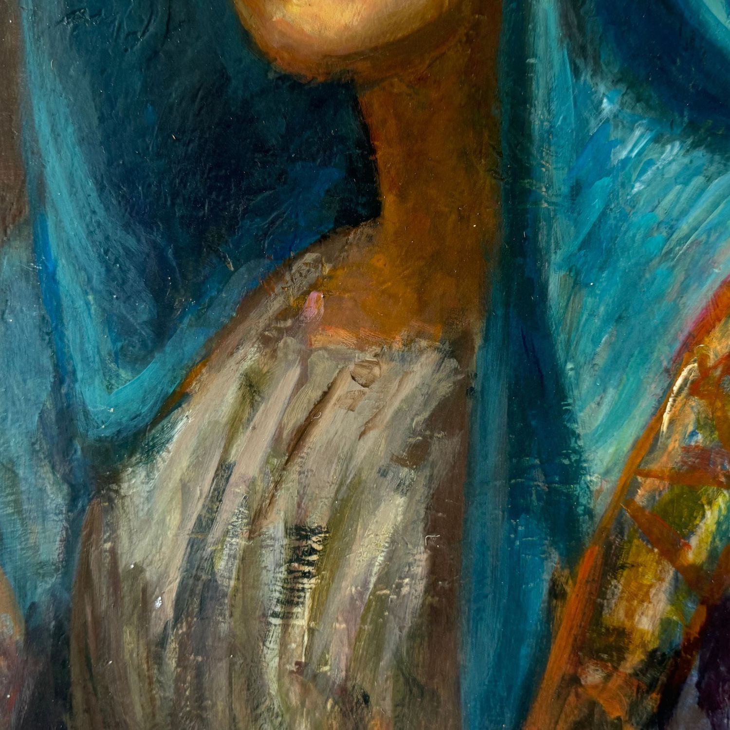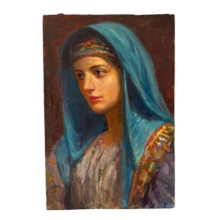 Dipinto olio su pannello, periodo XX secolo scuola spagnola, raffigurante Ritratto di donna.