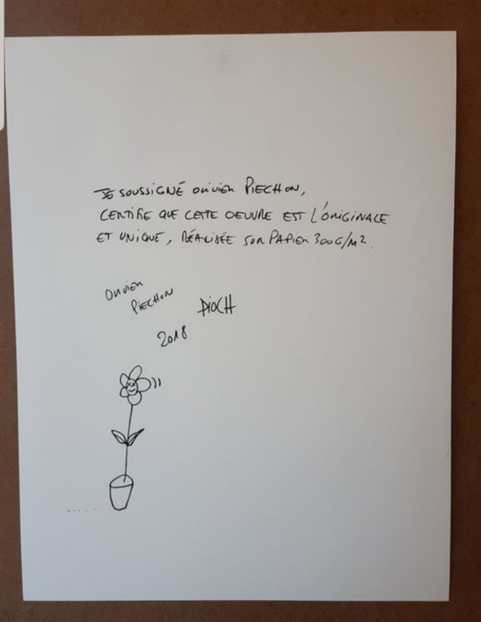 Certificato di autenticitàOpera unica su carta 300 gr.